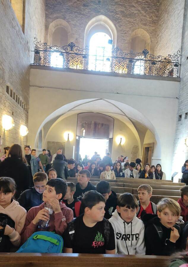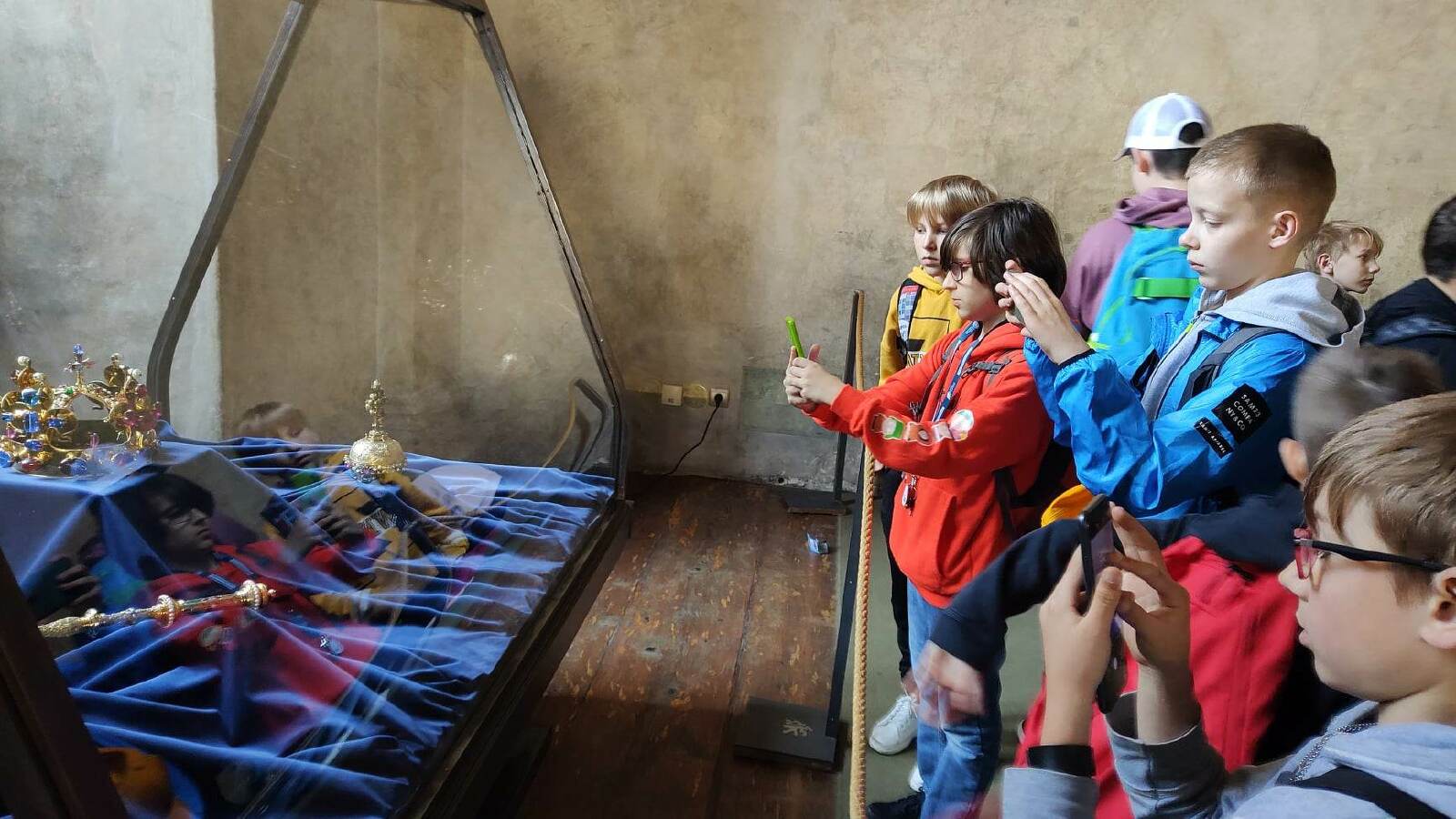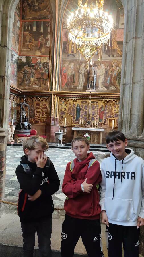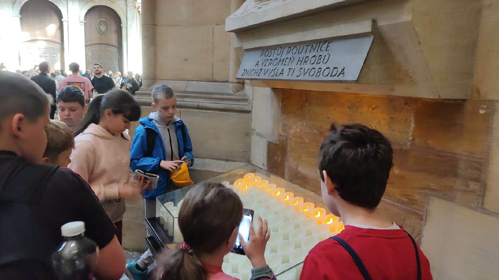 Nejdříve jsme zavítali na Pražský hrad, největší hradní komlex na světě, založený knížetem Bořivojem již v 9. století. Prohlédli jsme si chrám svatého Víta, nahlédli jsme do kaple sv.Václava, ve které se nachází komnata s korunovačními klenoty, zaujaly nás dveře do kaple, údajně s původním klepadlem z kostela ve Staré Boleslavi, klepadlem, kterého se držel sv. Václav v roce 935, než byl napaden svým bratrem Boleslavem. Na druhém hradním nádvoří jsme se zastavili u sochy sv. Jiří. Ukázali jsme si, ve které části Hradu se nachází prezidentské kanceláře. Ve Starém královském paláci jsme si prošli Vladislavský sál, ve Staré sněmovně děti zaujala kopie korunovačních klenot. V bazilice sv. Jiří s charakteristickými dvěma bílými věžemi (Evou a Adamem), kde jsou uloženy ostatky sv. Ludmily a dalších Přemyslovců, jsme chvilku spočinuli na dřevěných lavicích. Posledním místem našeho putování byla Zlatá ulička, založená za vlády Rudolfa II. Prohlédli jsme si zde malebné domečky s obchůdky, ukázali jsme si, kde pobýval Jaroslav Seifert, český spisovatel, nositel Nobelovy ceny za literaturu (dům č. 12). Viděli jsme věž Daliborku.