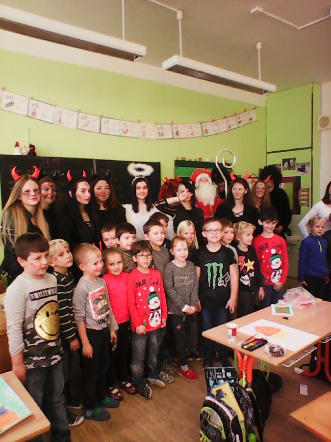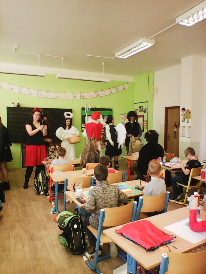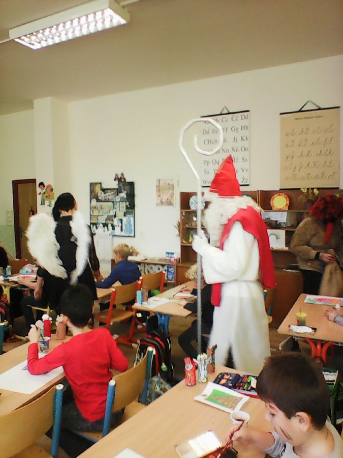 Celý podzim jsme se poctivě učili písmenka a číslice, nacvičovali vystoupení na školní akademii. Všechno se dařilo, a tak jsme si přáli, aby i nás navštívil Mikuláš. Opravdu přišel, dokonce s několika čerty, čerticemi a anděly. Přivítali jsme je písničkou a básničkami a na oplátku každý dostal medový perník. A všechno, co jsme slíbili, se budeme snažit dodržet! ![]()