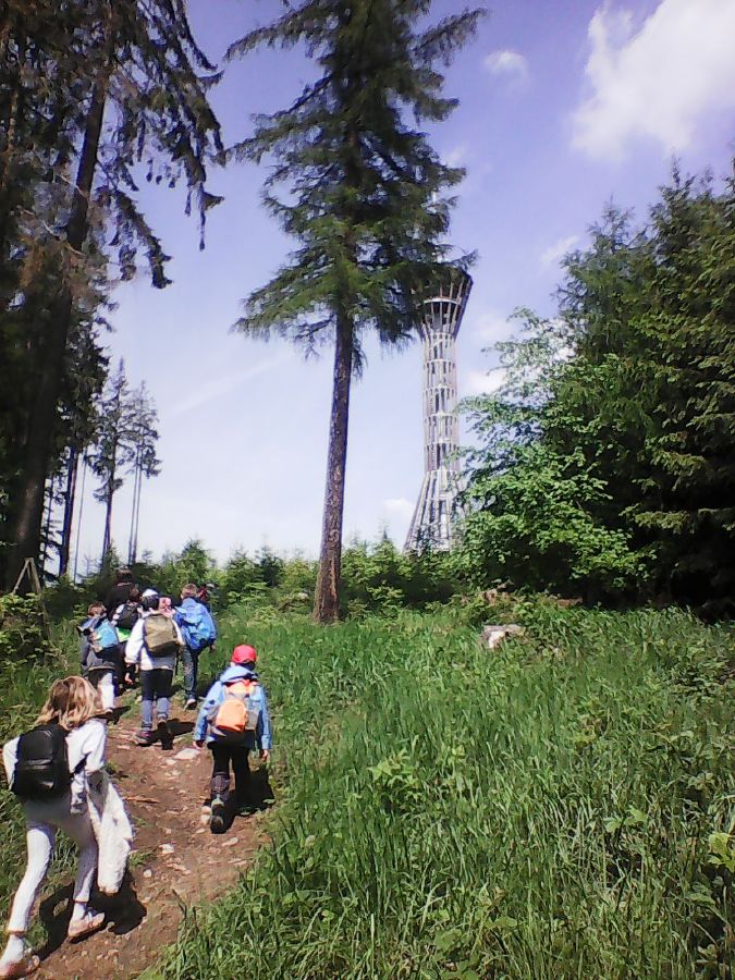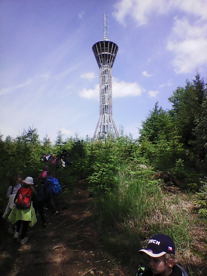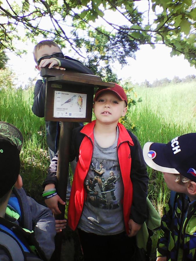V pátek 24.5.2019 se prvňáčci vydali do Chocerad vyzvednout své spolužáky, kteří zde pobývali na škole v přírodě. Nejdříve ale navštívili místní keřově bludiště a potom se všichni společně vydali k novému cíli - rozhledně "Špulka" na vrchu Březák nedaleko Divišova. K rozhledně vedla zajímavá naučná ptačí stezka s 21 interaktivními panely. Kdo chtěl na vyhlídku ve výšce 30 m, musel zdolat 151 schodů. Odvážlivci pak mohli pozozovat krajinu severně od Velkého Blaníku. Počasí bylo skvělé a výlet se všem moc líbil.![]()