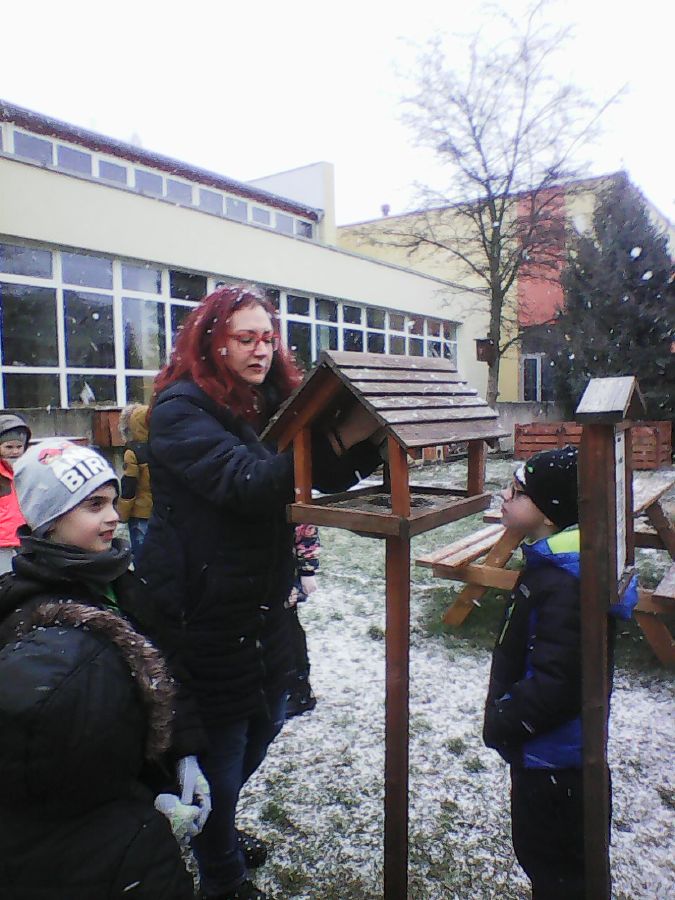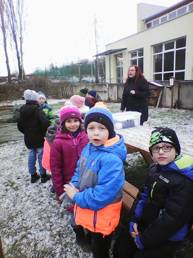 Vyučování v úterý 12.2.2019 jsme věnovali našim přezimujícím ptáčkům. Nejprve jsme je pozorovali v terénu okolí školy. Naučili jsme poznávat nejběžnější druhy a zjistili jsme, čím se od sebe liší, ale i jak se dorozumívají. Jakmile za námi do přírodní učebny přišel zatoulaný kocourek, věděli jsme, že s pozorováním je konec. Nasypali jsme tedy do krmítka výživné krmivo a přešli do třídy, abychom splnili výtvarnou část projektového dne. Čekalo nás zhotovení obrázku s krmítkem a ptáčkem. Činnosti se střídaly, získali jsme nové poznatky a navíc si všichni odnesli krásný obrázek. Projektový den se nám vydařil.