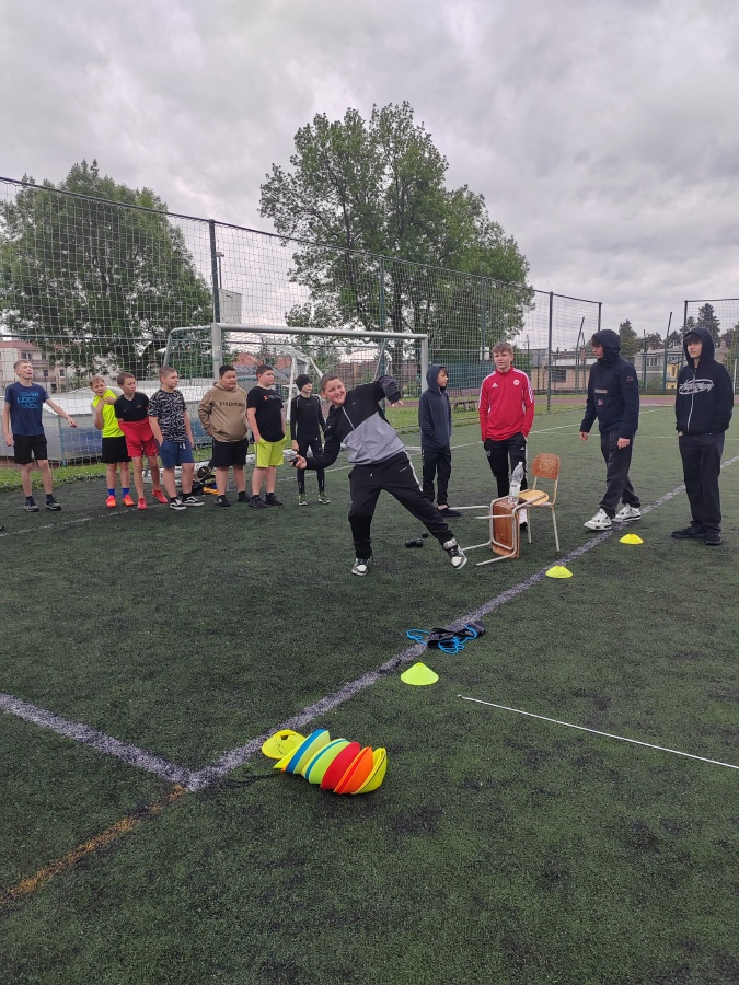 Počasí nám vůbec nepřálo. Od rána pršelo a snad to bylo příčinou, že se sportovního dne zúčastnilo jen deset nejodvážnějších kluků ze třídy. Ovšem ti se do sportovního zápolení zapojili s nadšením a nakonec jsme si odváželi i několik umístění na "bedně". Obrovská gratulace patří Tadeášovi, který se umístil na 1. místě v hodu kriketovým míčkem, kdy s výkonem 40 m o celých 6 m přehodil žáka na druhém místě.