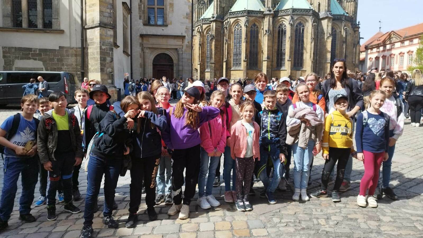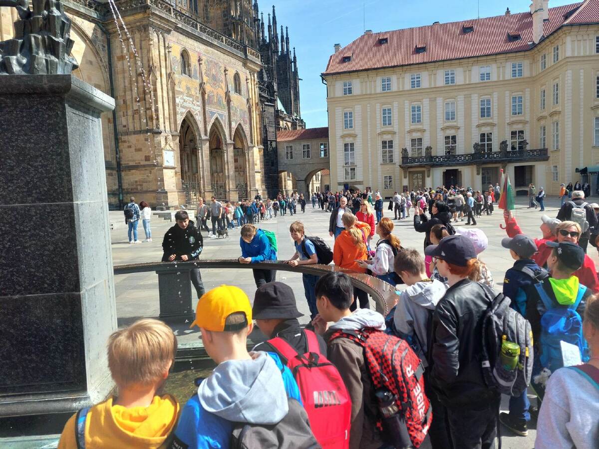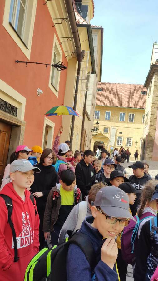 Ve čtvrtek 4.5. jsme navštívili naše hlavní město Prahu. Někteří jsme byli v historickém centru poprvé. Nejprve jsme zavítali na Pražský hrad. Překvapilo nás tam množství turistů z celého světa. První zastávka byla v katedrále svatého Víta, poté Vladislavský sál, bazilika svatého Jiří, a nakonec jsme navštívili Zlatou uličku i s věží Daliborkou. Kromě turistů byli na každém rohu vojáci, policisté i hradní stráž. Můžeme tedy říct, že náš pan prezident je v bezpečí. Následně jsme si prošli nedaleký Petřín. Někteří vyšplhali na Petřínskou rozhlednu a někdo šel bloudit do zrcadlového bludiště. Cestou na zpět jsme se za odměnu zastavili v rychlém občerstvení. Počasí nám přálo, exkurze se nám všem líbila.