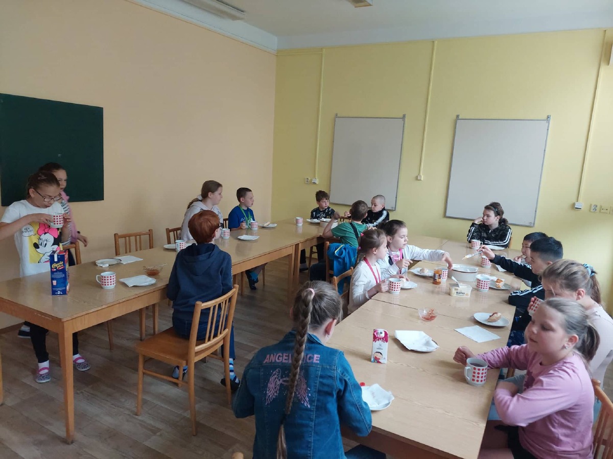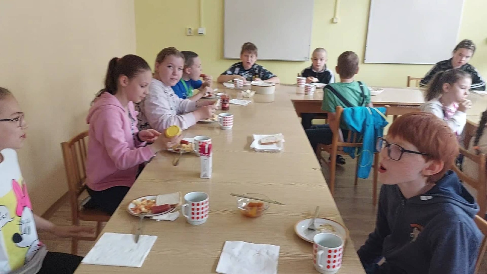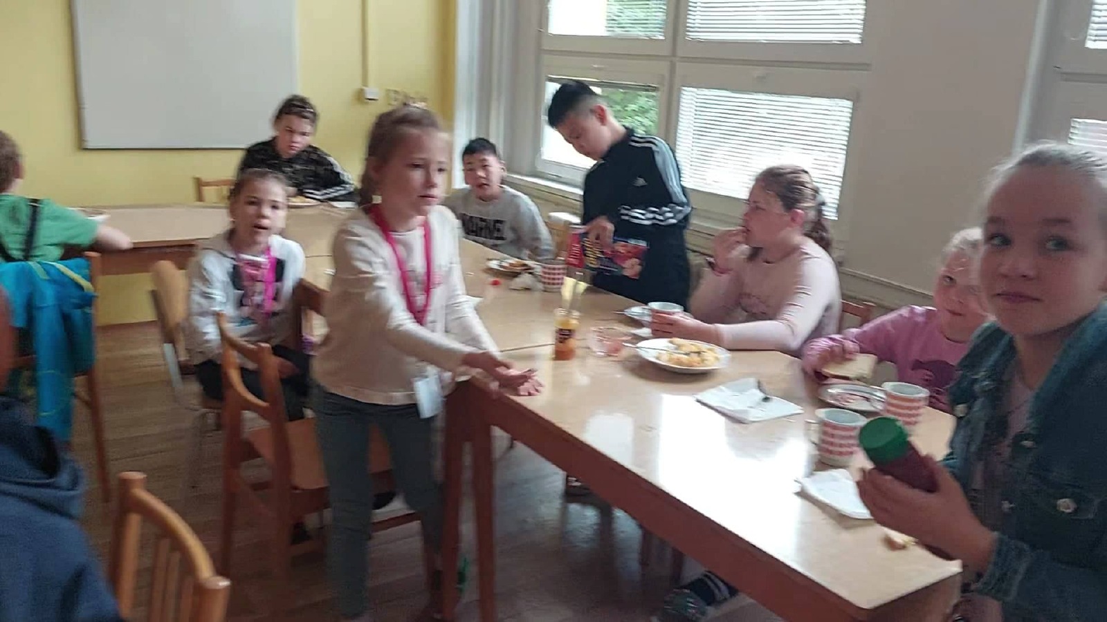 Dnes 17.5. jsme snídali jako Angličané. Měli jsme typickou English breakfast. Posnídali jsme čerstvé rohlíky s máslem a marmeládou, tousty s míchanými vajíčky a párky i fazole jsme ochutnali. Odvážlivci vyzkoušeli čaj s mlékem a ostatní džus. Během jídla jsme konverzovali česky, ale také v angličtině.
