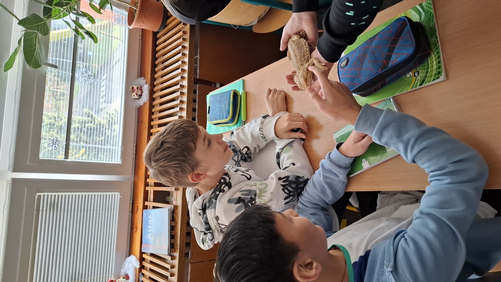 Exotická návštěva v 7.B: Seznámili jsme se s agamou Péťou