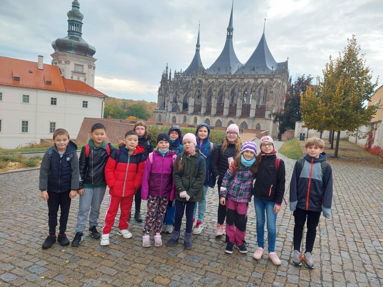 Ve čtvrtek 21.10. se naše třída vydala na vlastivědnou vycházku po kutnohorských architektonických skvostech. Dozvěděli jsme se něco nového, zopakovali jsme si názvy budov, uslyšeli jsme pár kutnohorských pověstí, vyhledávali v plánu města, luštili letopočet na sochách, vyplnili pracovní list a mnoho dalšího. I přes částečnou nepřízeň počasí jsme si akci vedenou vzdělávacím centrem Pod Horami moc užili a těšíme se na další spolupráci.