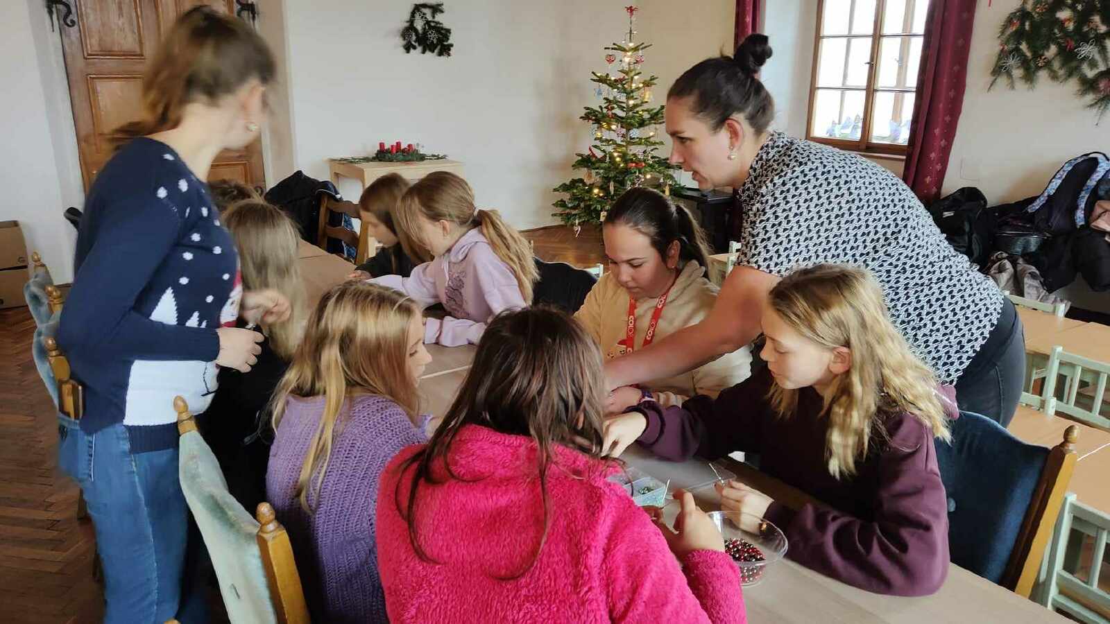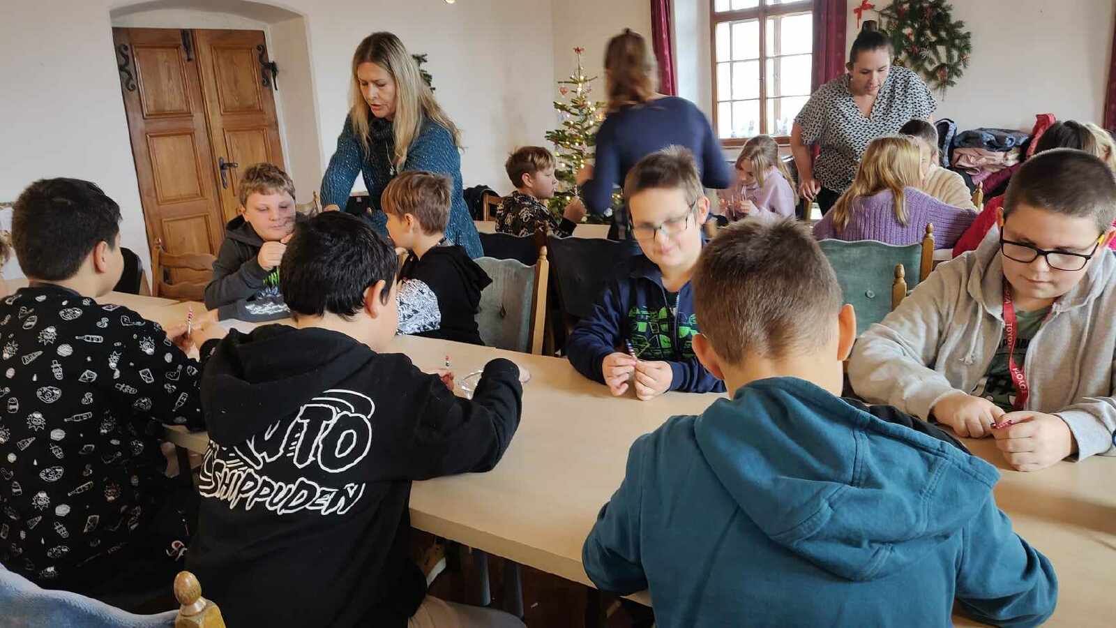 V adventní době jsme se naučili krásnou koledu Narodil se Kristus Pán, kterou jsme pak zazpívali rodičům na vánoční besídce 1. stupně, na vánoční trh jsme také nachystali voňavé levandulové sáčky. Ve školní keramické dílně jsme si vyrobili vánoční svícen a na Hrádku jsme navštívili výstavu betlémů a vytvořili jsme si ozdobičku z korálků.