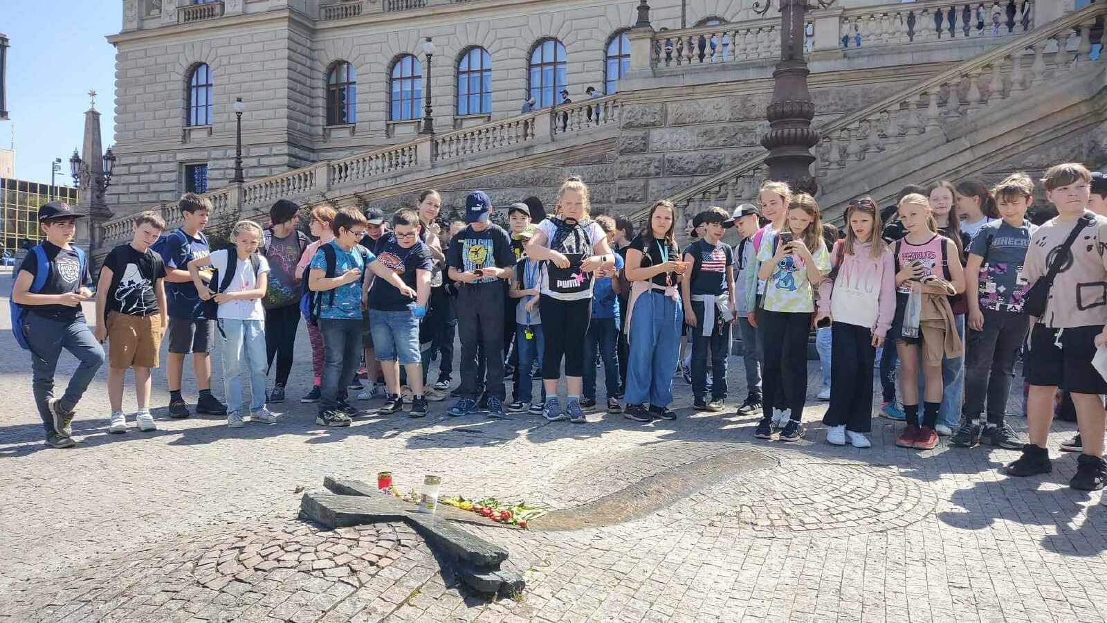 A jelikož jsme škola Jana Palacha, připomněli jsme si jeho památku společnou fotkou z pietního místa před muzeem.