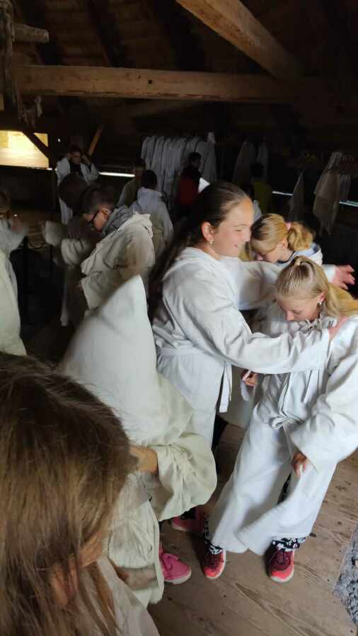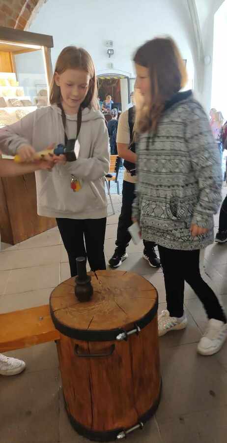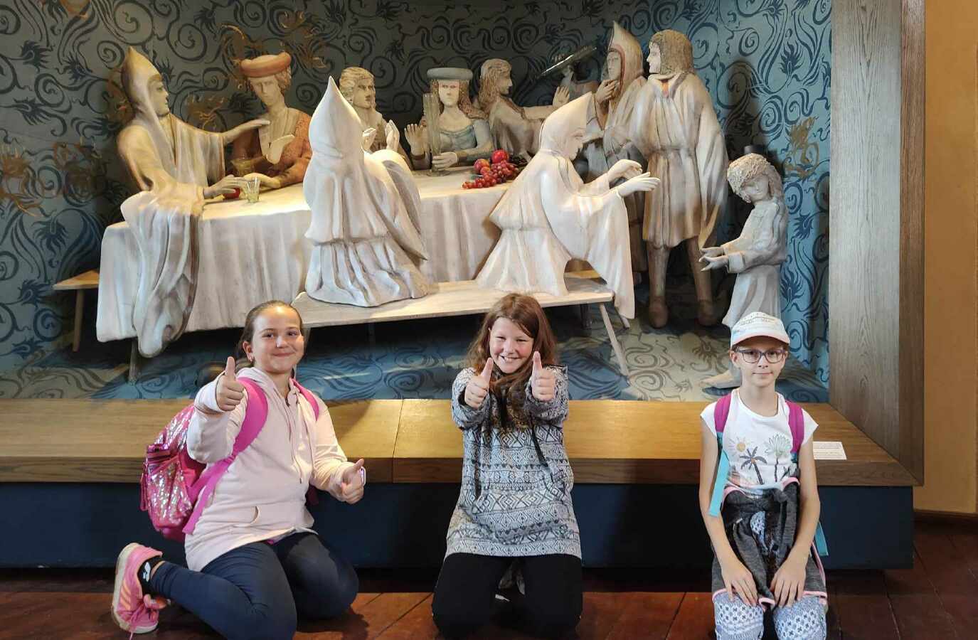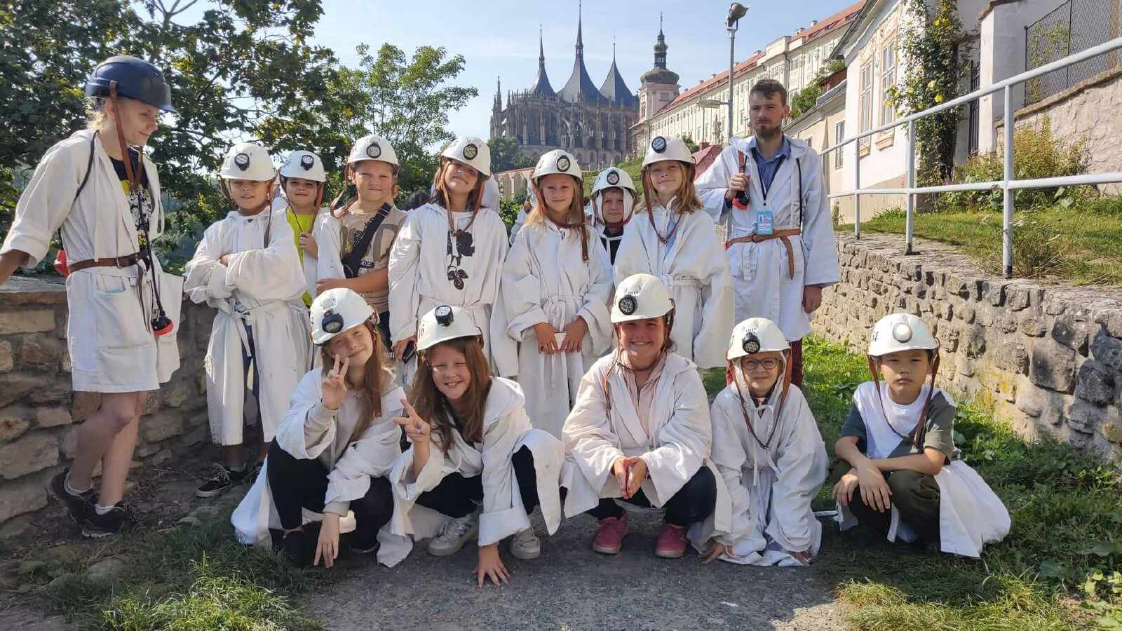 V pondělí 12.9. jsme navštívili I. a II. okruh Českého muzea stříbra. Dozvěděli jsme se spoustu informací, viděli jsme mnoho krásných a zajímavých exponátů. Nejvíce se ale dětem líbilo v dole (odvodňovací šachtě) sv. Jiří. Než jsme sestoupili do hloubky 30 - 35 metrů, posílili jsme se hornickým pozdravem: "Zdař Bůh!" V bílých perkytlích a s přilbami se světlem to dětem moc slušelo. Vyzkoušeli jsme si pravou, nefalšovanou důlní tmu.
