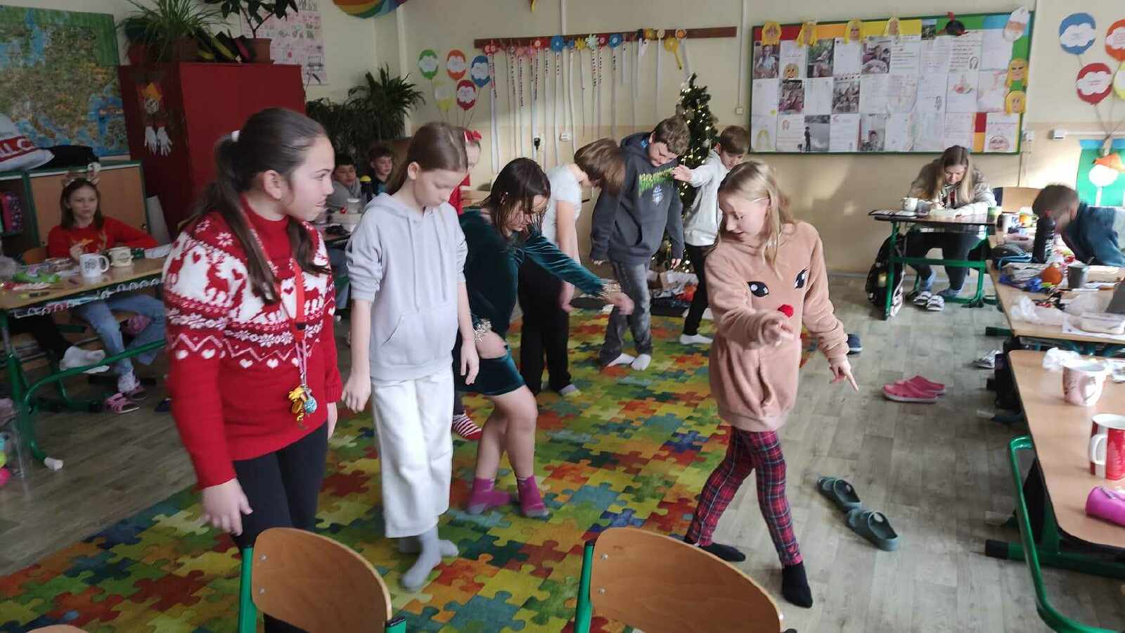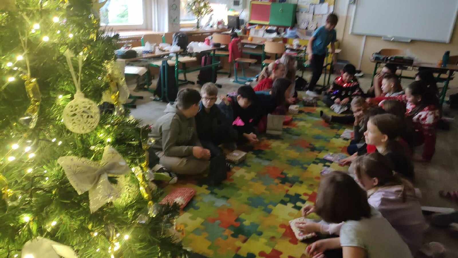 Děti si přinesly a rozdaly dárečky, zasoutěžily si, zahrály hry, zatančily, popily vánoční čaj, ochutnaly cukroví, vyrobily si vánočního ježka a rozloučily se se starým rokem.