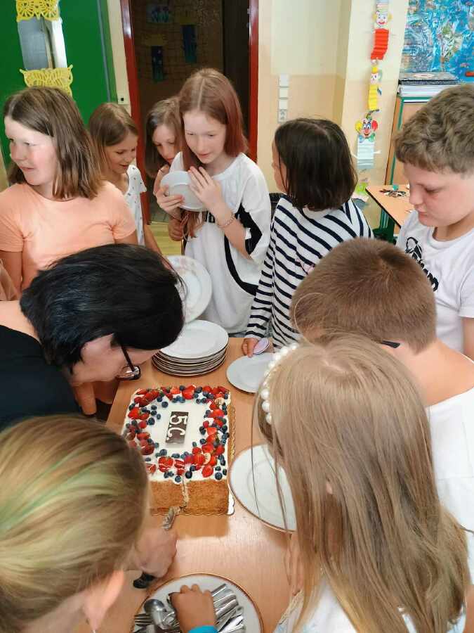Dvanáct dětí se mohlo pyšnit vyznamenáním, šest z vyznamenaných samými jedničkami. Někteří si s vysvědčením odnesli také pochvaly. Hlavní cenu celoroční třídní soutěže - duhový dort - získala Monča. Nasbírala 98 duhových puntíkú. Blahopřejeme. A aby to ostatním nebylo líto, ochutnali dortík již ve čtvrtek, vždyť společně získali krásných 700 puntíků.