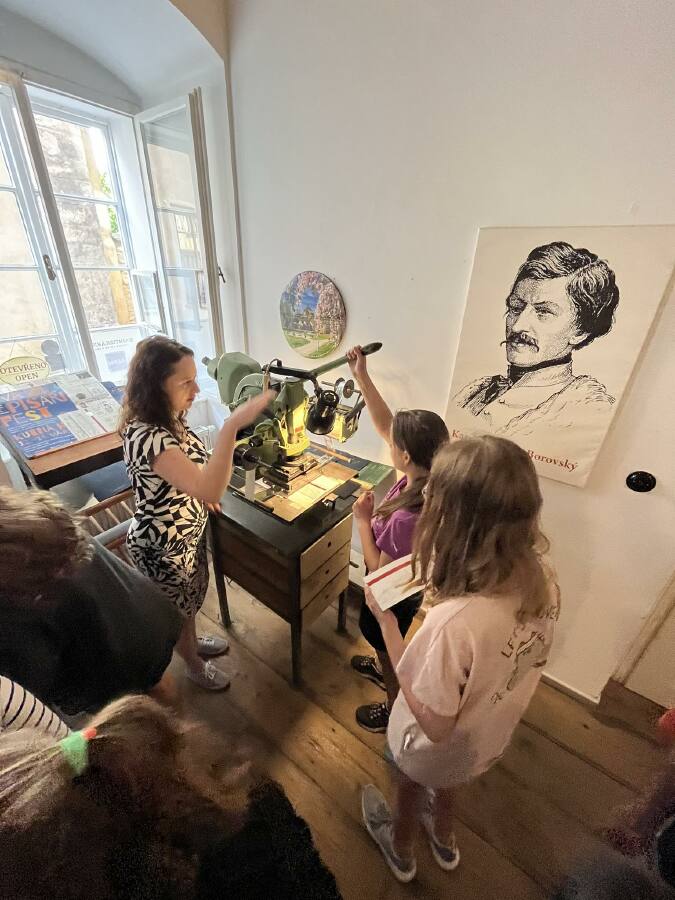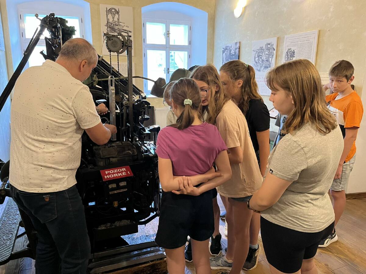 V pátek 2.6.2023 se v třídě 6.B oslavil DEN DĚTÍ. Žáci navštívili Knihtiskárnu v Kutné Hoře, kde mohli vidět expozici historie knihtisku. Po přednášce měli žáci možnost vytvořit si vlastní pohlednici. A na úplný závěr navštívili sklep a štolu, která se nachází pod domem. Potom se žáci vydali na náměstí, kde si mohli koupit něco dobrého na zub.![]()