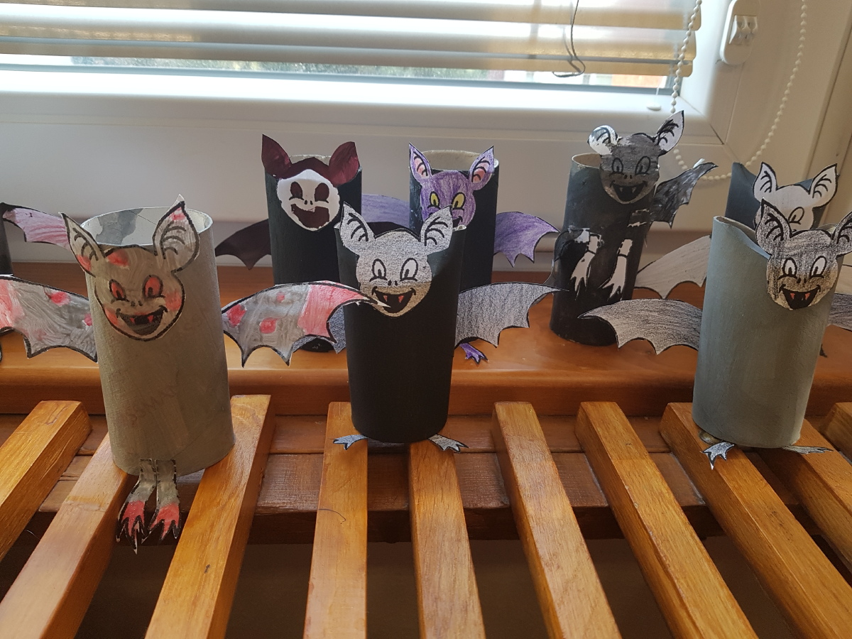 Během posledních říjnových dnů si děti ze 3. B vyrobily krásné halloweenské lampy a papírové netopýry. Náš třídní "Halloween" jsme si ale nejvíce užili v pátek 1. 11. Natěšené děti se v ten den převlékly do krásných strašidelných kostýmů. V matematice jsme trénovali halloweenskou barevnou násobilku, v češtině "běhací diktát" s netopýry, v hodině angličtiny jsme vyrobili upíra podle anglického návodu a rozšířili naši slovní zásobu o pár nových strašidel, v geometrii děti rýsovaly pavučiny. Nechybělo ani skvělé občerstvení v podobě stylových muffinů a perníčků, po kterých se jen zaprášilo. Za to patří velké díky i maminkám!