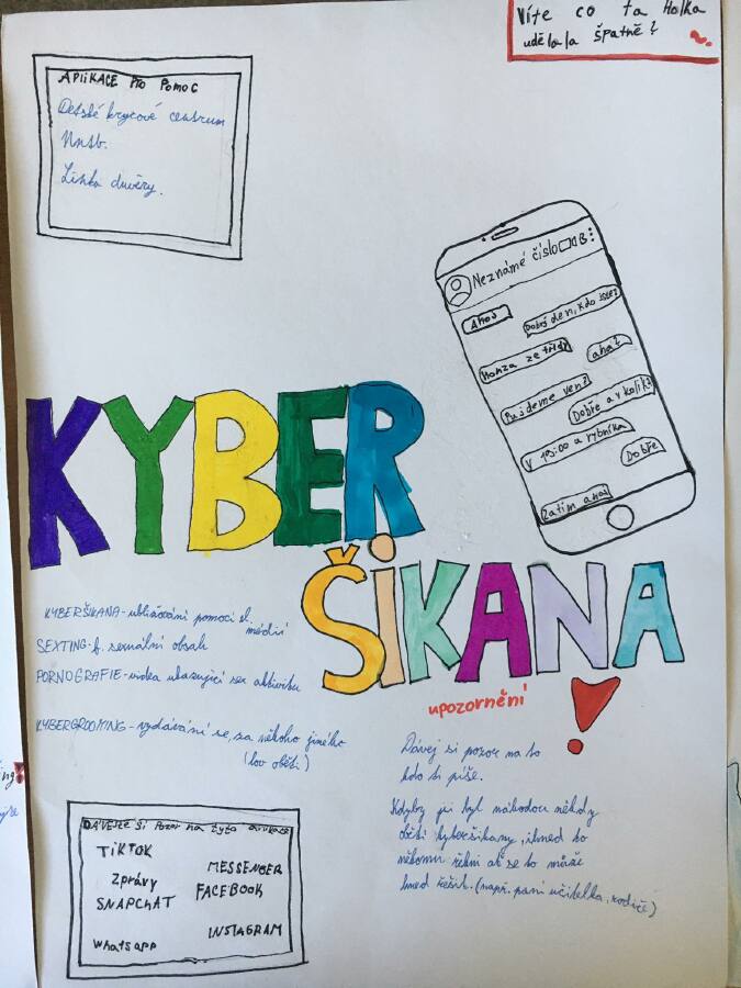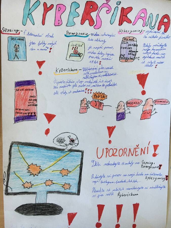 Dnes 25.10. proběhl projektový den zaměřený na KYBERŠIKANU. Žáci si připomněli, co to kyberšikana je, a jak ji předcházet a hlavně jak se proti ní bránit. Dálší témata, která během projektové dne zazněla byla: kyberstalking, kybergrooming, sexting, desatero bezpečného internetu, zdraví v on-line světě.