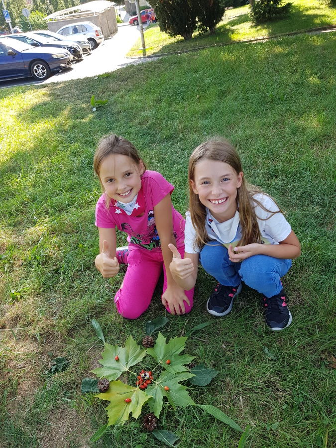 V dnešním prosluněném odpoledni jsme vyrazili do terénu, tvořili mandaly z přírodnin a zároveň si zopakovali i učivo do Přírodovědy.