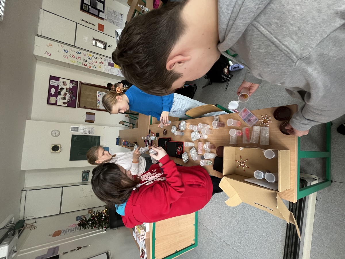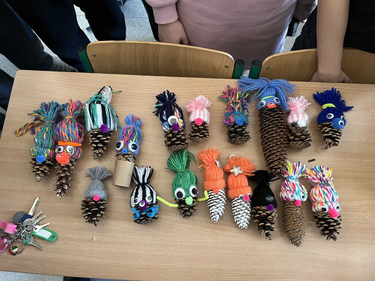 Během posledních týdnu a dnů jsme vyráběli vločky z kolárků (program Pod Horami) a vánoční skřítky z šišek.
