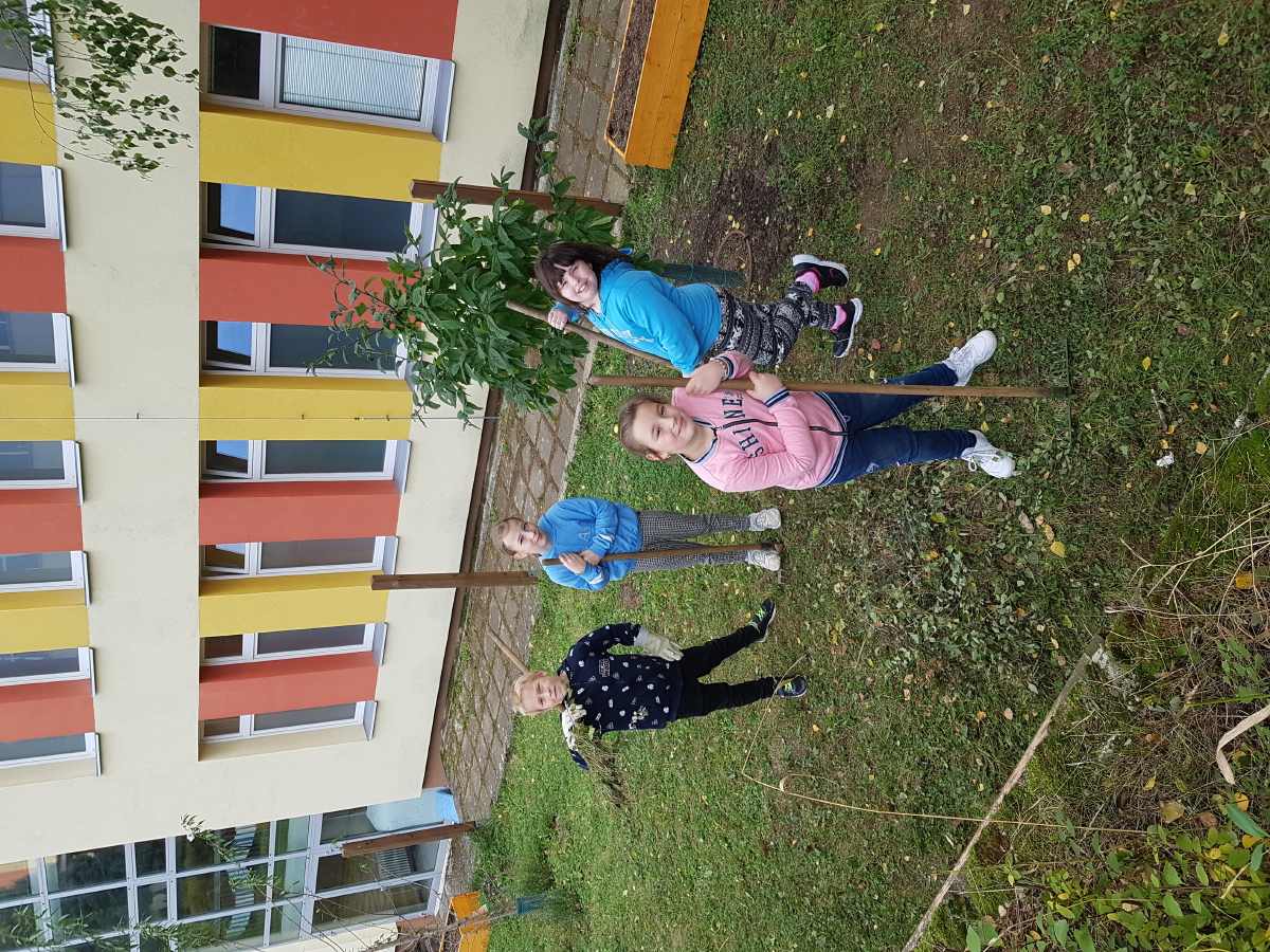 Dnes byli čtvrťáci v rámci PČ a hodiny M pomoci s úpravou zahradní učebny sdružení Pod Horami. 1. hodinu pilně hrabali staré větve a listí, sbírali semínka, stříhali a třídili větve, odváželi zahradní odpad na kompost, zkrátka pomáhali s nachystáním zahradní učebny. Během 2. hodiny, kdy se ve škole běžně učíme matematiku, jsme zahradní učebnu vyzkoušeli. Děti si pomocí přírodních materiálů zopakovaly znalosti z geometrie, ale procvičily si i z českého jazyka druhy souhlásek a vyjmenovaná slova. Naučily se hrát "Mlýn" a inspirovaly se dalšími deskovými hrami, které si prý děvčata vyrobí i do třídy. Děti byly z práce i "učení" na zahradě nadšené a těší se na další návštěvu!