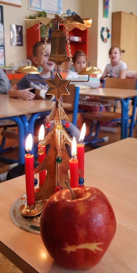 Pátek jsme si spolu krásně užili v duchu Vánoc. Nechybělo nic ... stromeček, dárky, přečtená vánoční pohádka, cukroví, andělské zvonění, hvězdička v jablíčku a nakonec i přípitek.