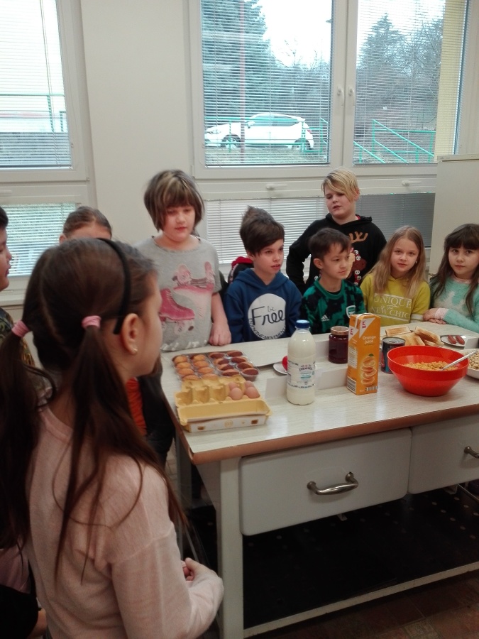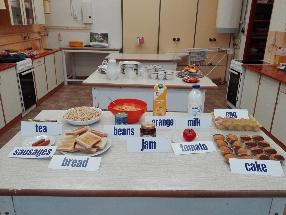 Žáci 3.C měli tento týden zpestřenou výuku anglického jazyka. Sešli se totiž ve školní kuchyňce, kde si nejprve zopakovali slovíčka k tématu Food & Drink a poté začali ochutnávat pravou anglickou snídani - English Breakfast. Podávaly se toasty s marmeládou, muffiny, cereálie s mlékem a samozřejmě vajíčka, párky a fazole. Nechyběl ani šálek černého čaje s mlékem.