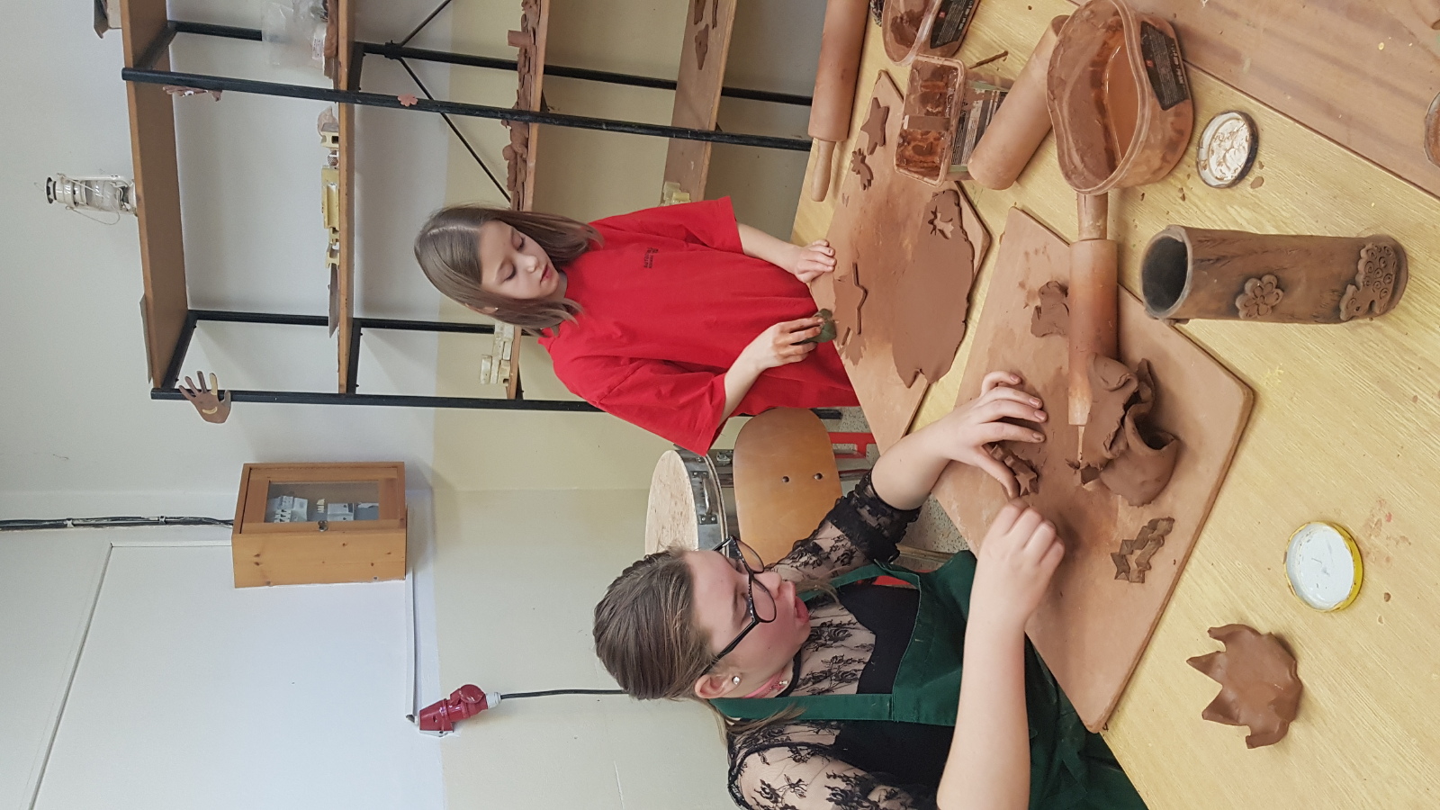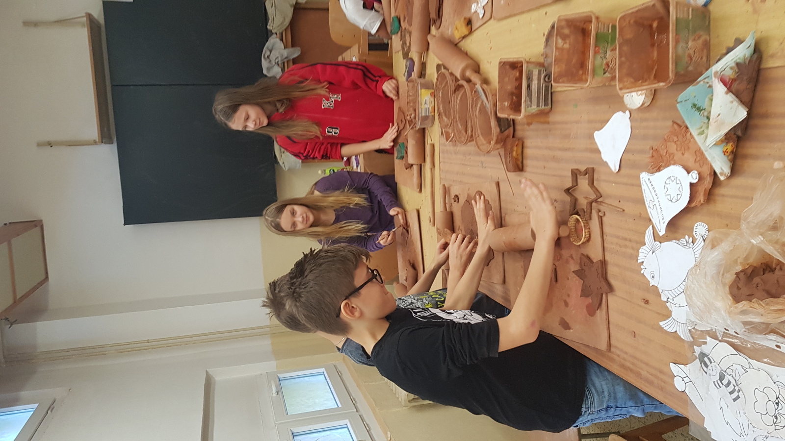 Anděl a čert s 5. C v keramické dílně:)