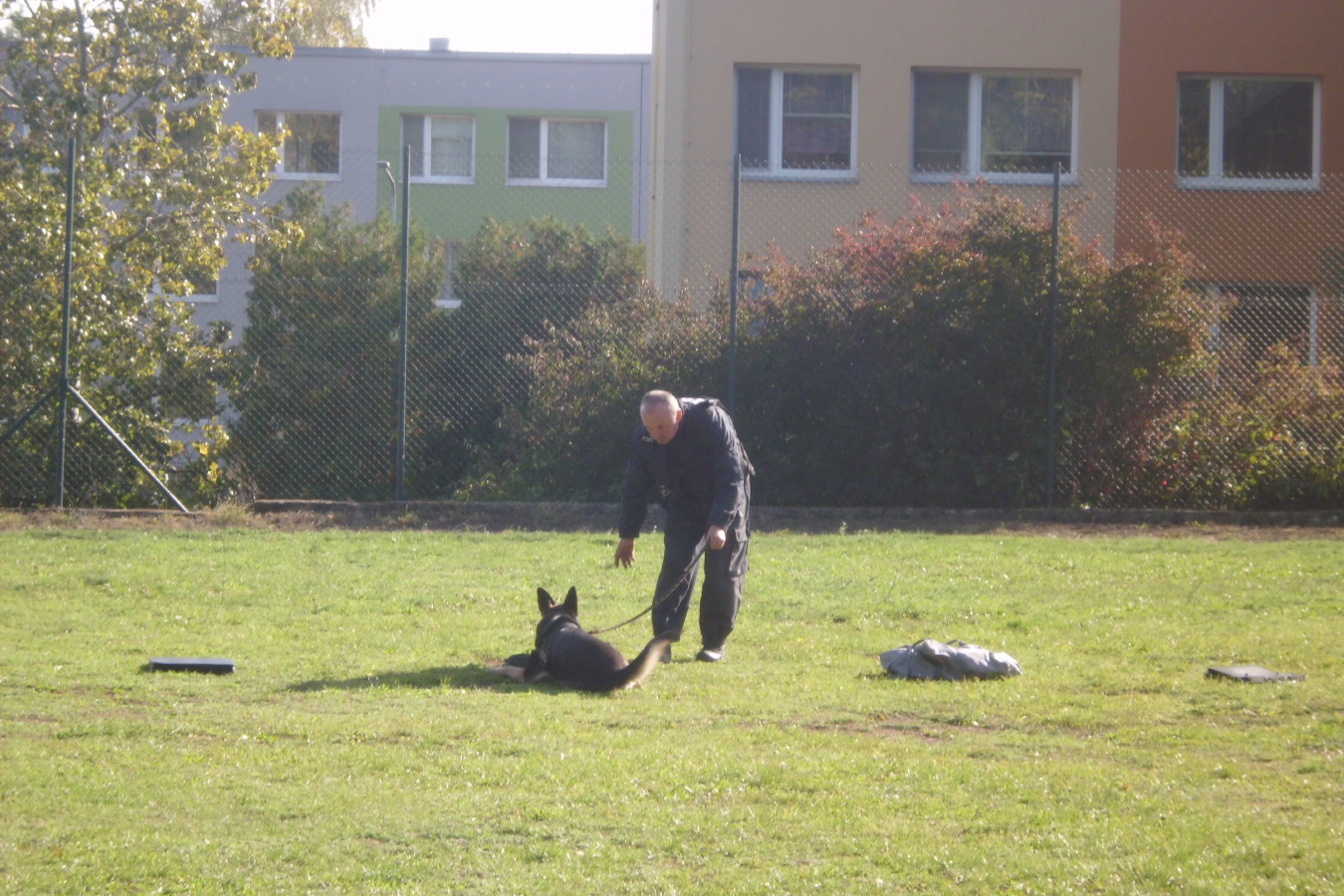 Ve 2. polovině dopoledne jsme se přemístili opět ven a sledovali ukázky a poslouchali povídání o tom, jak člověku pomáhá pes. ![]()