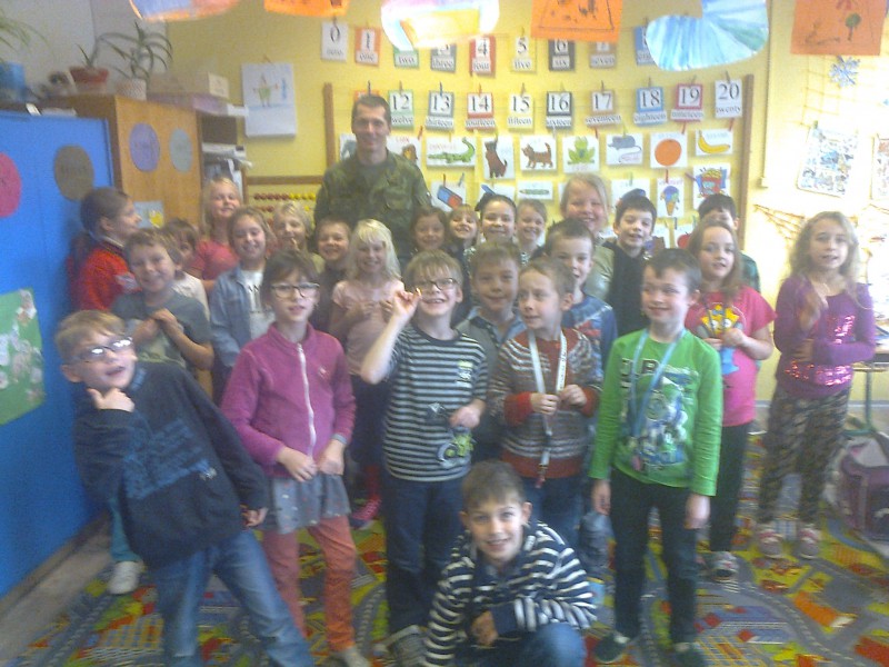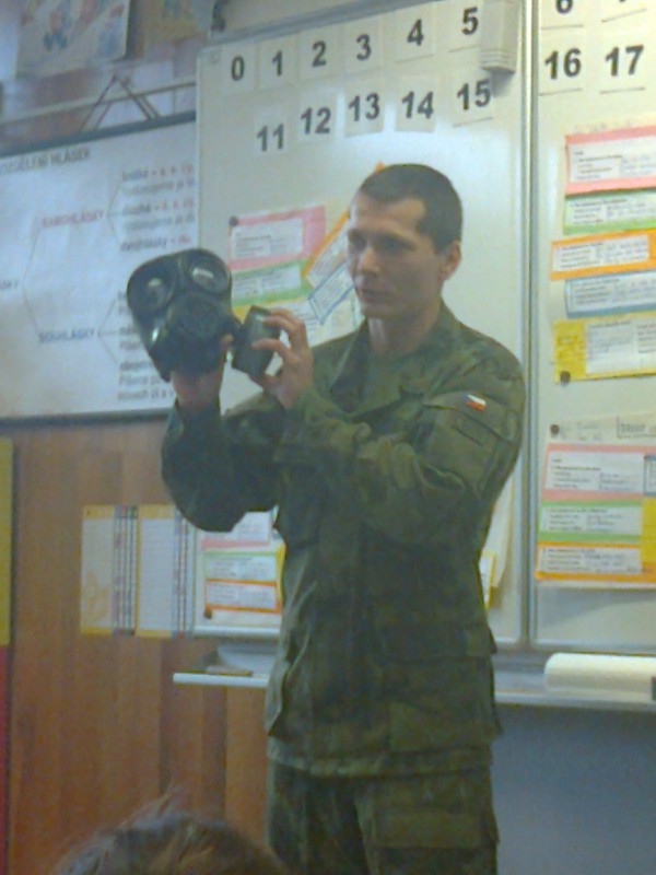 Ještě v prosinci (roku 2017) mezi nás zavítal tatínek Maxe, pan Bordovský. V rámci našeho miniprojektu "Rodiče mezi dětmi" nám povídal o tom, co to znamená být vojákem z povolání. Přinesl nám i nejrůznější potřeby vojáka - od ochranných pomůcek, přes náboje až ke zbrani. Děti si mohly vše nejen prohlédnout, ale i osahat a popř. i vyzkoušet (přilbu, plynovou masku). Setkání bylo velmi zajímavé a poučné. Všichny děti dostaly na památku i milý dárek.