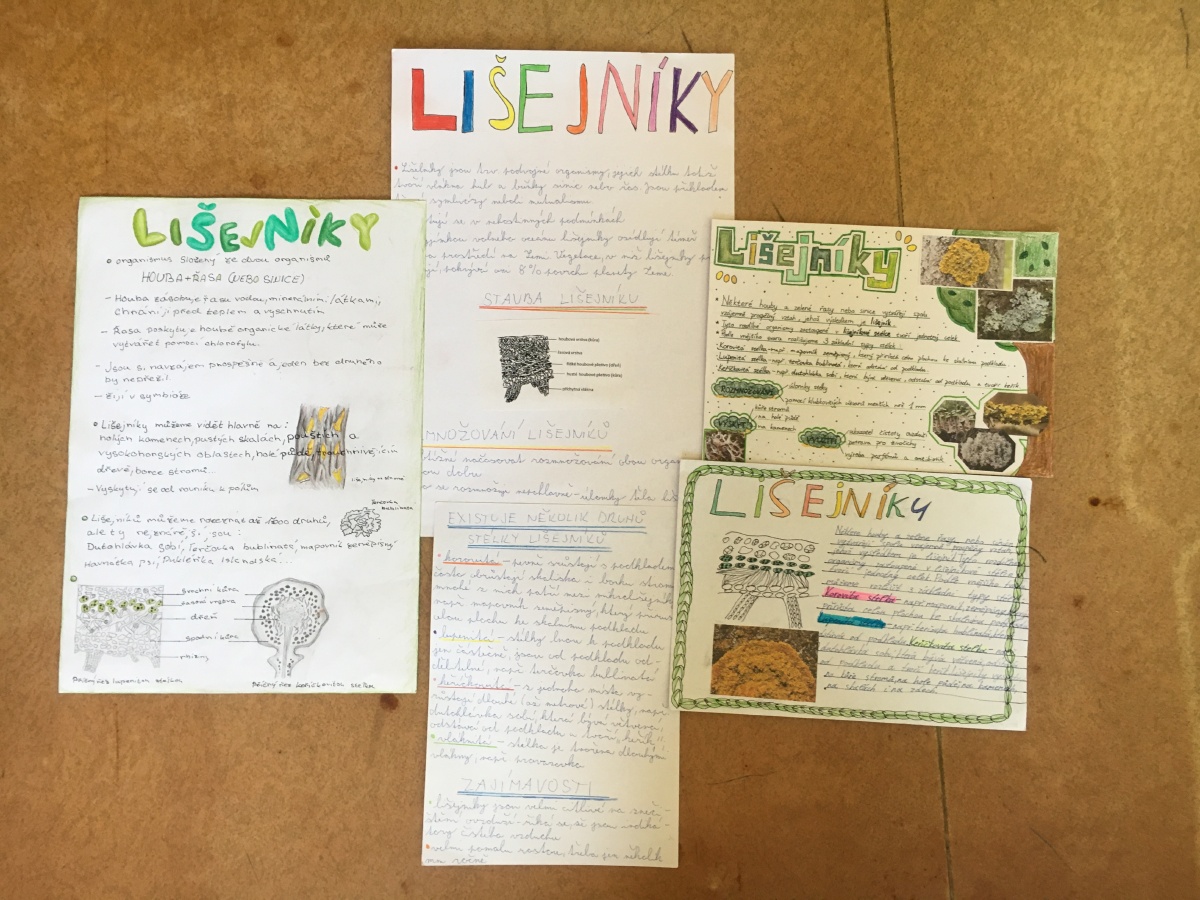 Žáci 6. A při hodinách přírodopisu zpracovali projekt na lišejníky. Projekt se dětem moc povedl, jak po grafické, tak i po obsahové stránce.