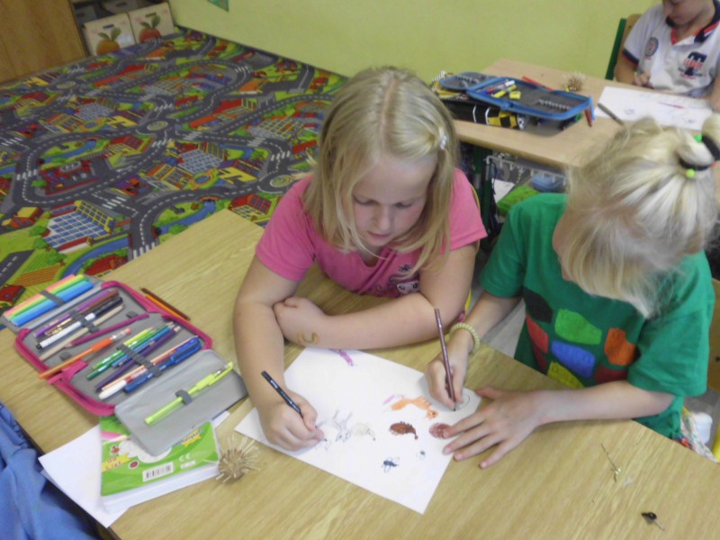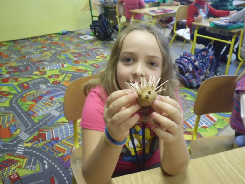 Lektorka Míša nám předala spoustu zajímavostí o tomto savci a jeho životě. Už víme, jak je dospělý ježek velký, kolik váží, kolik má bodlin, čím se živí, kdo je jeho nepřítel, jak se umí bránit, kolik mívá mláďat a jak mláďata vypadají po narození. Také víme, že je několik druhů a některé bychom už dokázali od sebe i rozeznat. Viděli jsme spoustu krásných fotografií, pustili jsem si videa, kreslili jsme, soutěžili a malého ježečka jsme si také vyrobili.