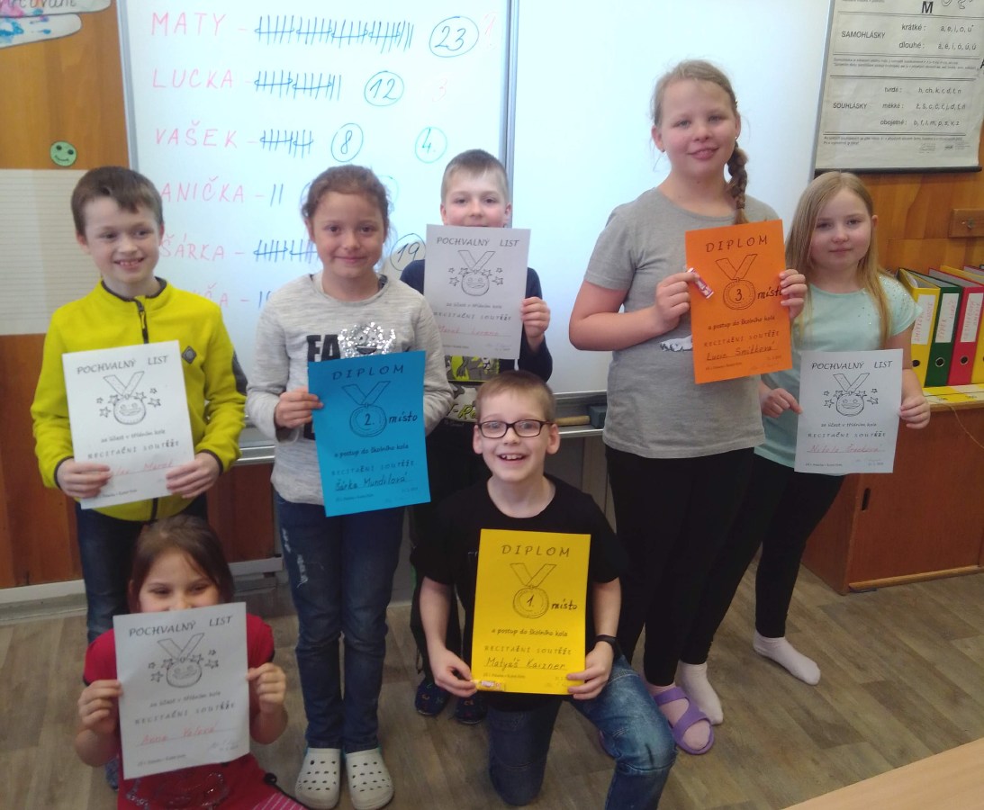Na stupně vítězů se dostali Lucie Smítková, Šárka Mundilová a Matyáš Kaizner, kteří postupují do školního kola. Gratulujeme a držíme palce!!!