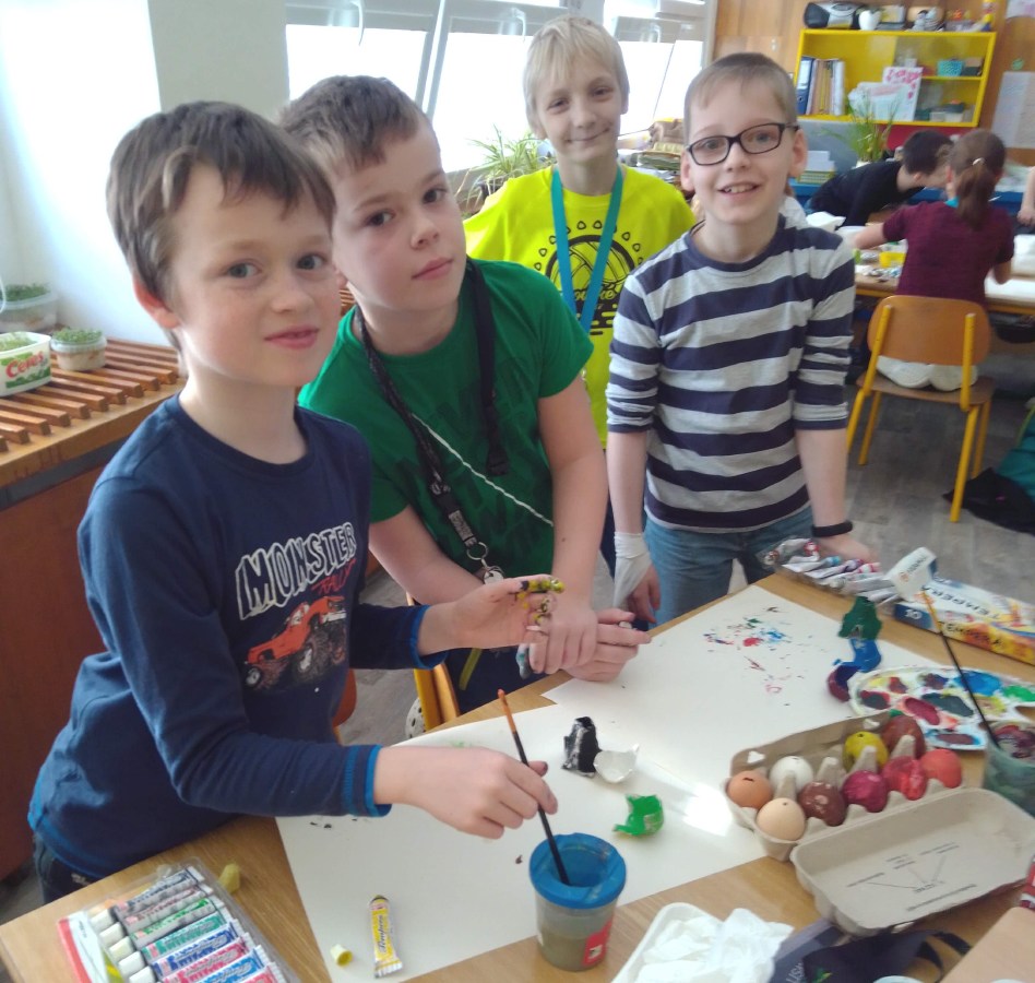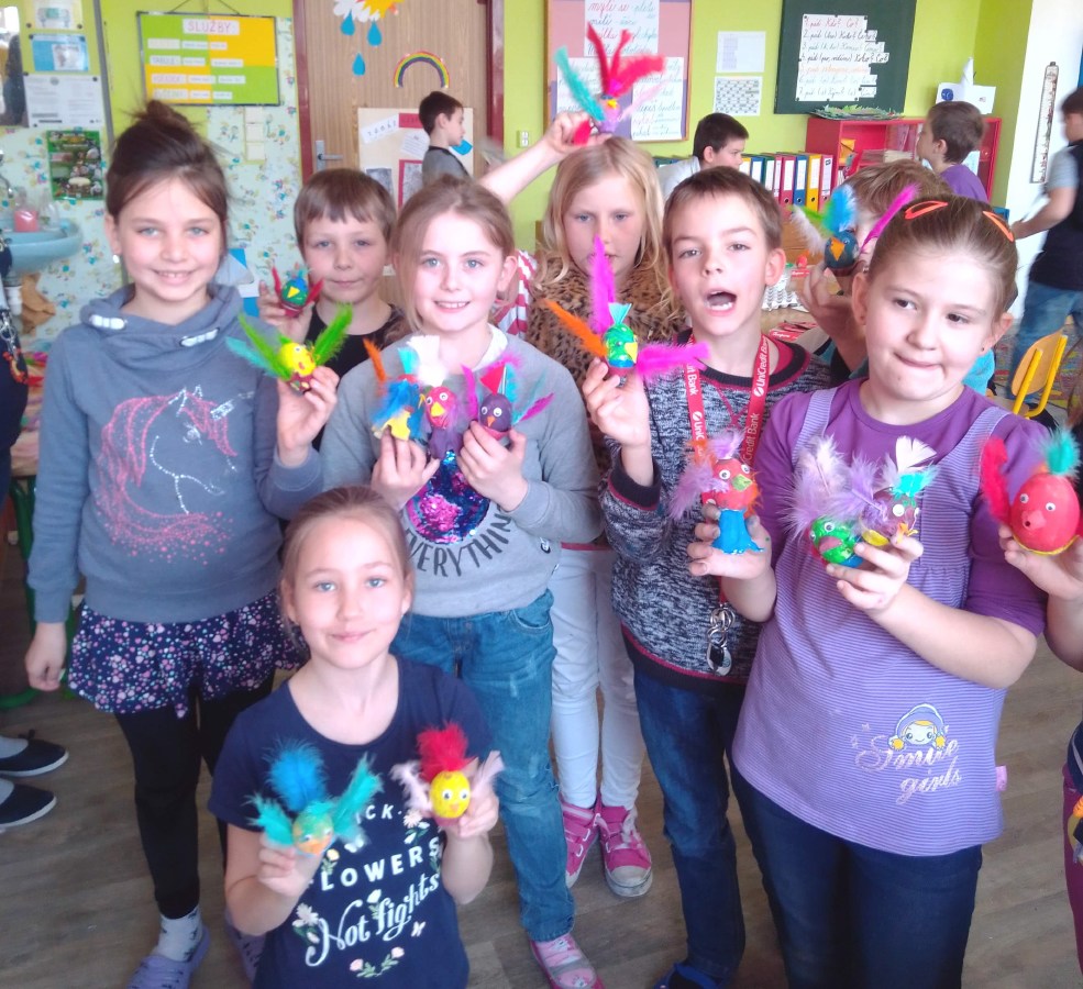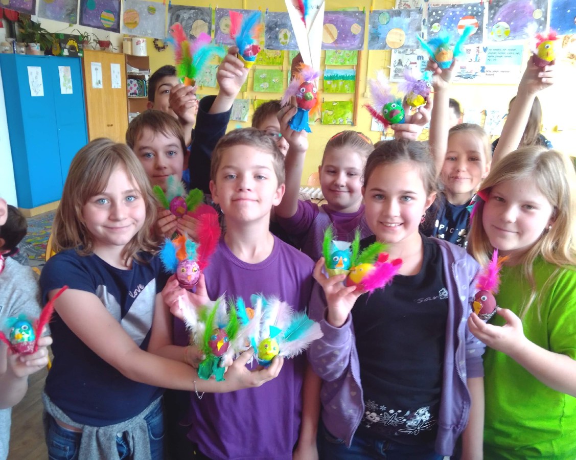 Poslední den před velikonočními prázdninami jsme si udělali ve 3. A a ve 3. B projektový den "Velikonoce - jaro". Děti z obou tříd se prostřídaly ve školní kuchyňce, kde vyráběli jarní pomazánky a také si vyzkoušely své šikovné ruce v dílničně. Tam jsme z vyfouknutých vajíček a barevných peříček vytvářeli roztomilé ptáčky. Všichni zaslouží velikou pochvalu! Ptáčci se náramně povedli!