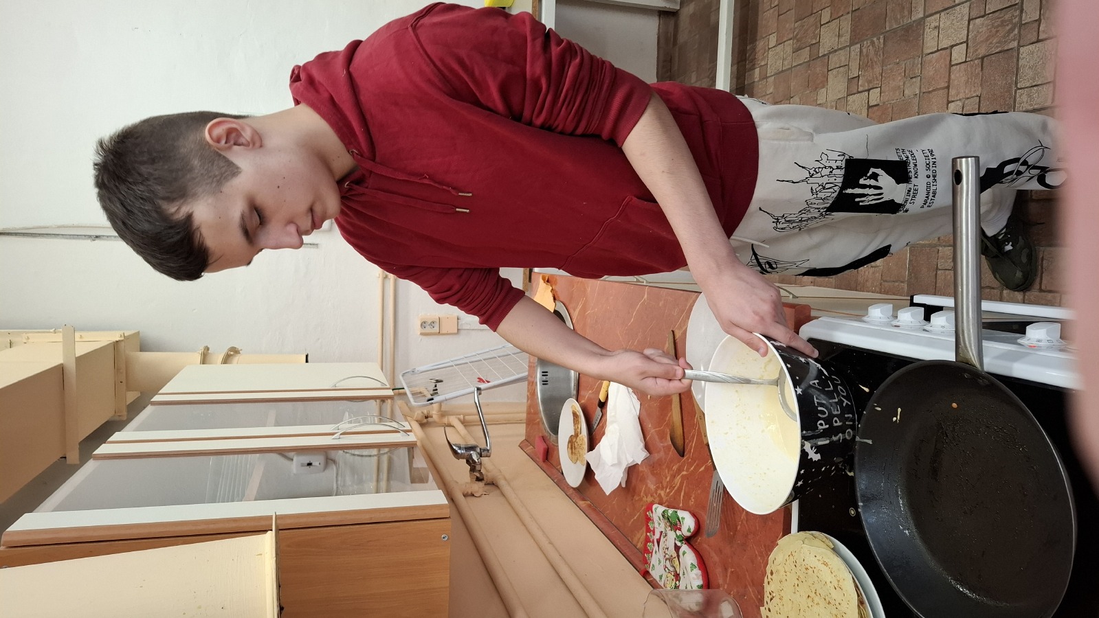 Týmový duch se projevil při přípravě palačinek – každý pomáhal, nechyběla skvělá nálada, zpěv ani tanec. Před ochutnávkou si žáci palačinky ozdobili jako mandaly, čímž procvičili kreativitu a soustředění v daném okamžiku. Nakonec se podělili i s učiteli, aby radost šířili dál.