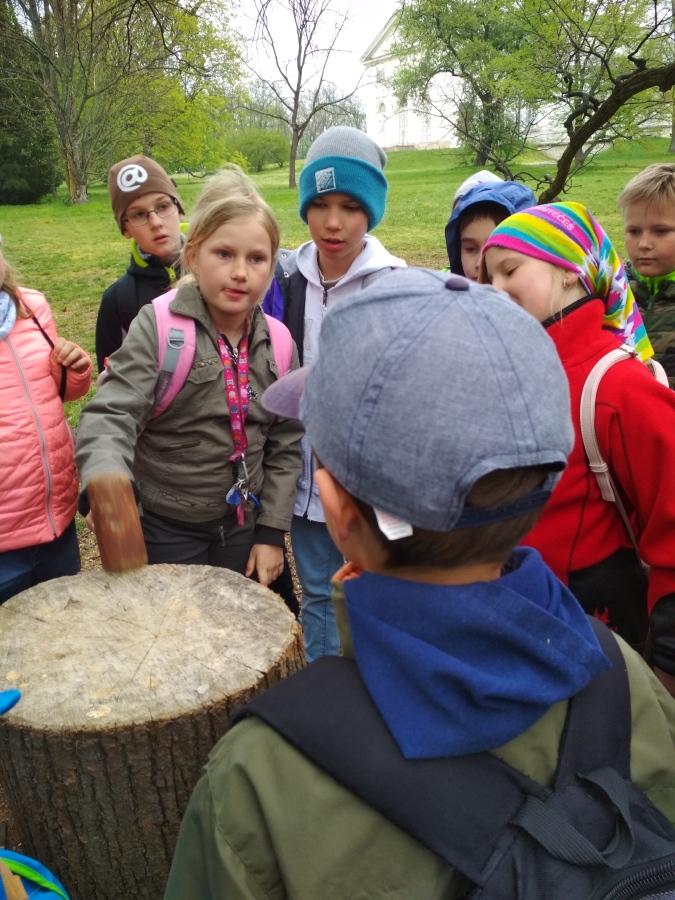 Program probíhal z větší části venku, kde děti například poznávaly po hmatu části jednotlivých pater vegetace (kořeny, mech, kůru). Dále poslouchaly, jak v dutině stromu zní ťukání datla a samy si také mohly vyzkoušet, zda se jim podaří stejně jako datlovi, který 40x za dvě vteřiny klovne do stromu, uhodit palicí do pařezu … nepovedlo …