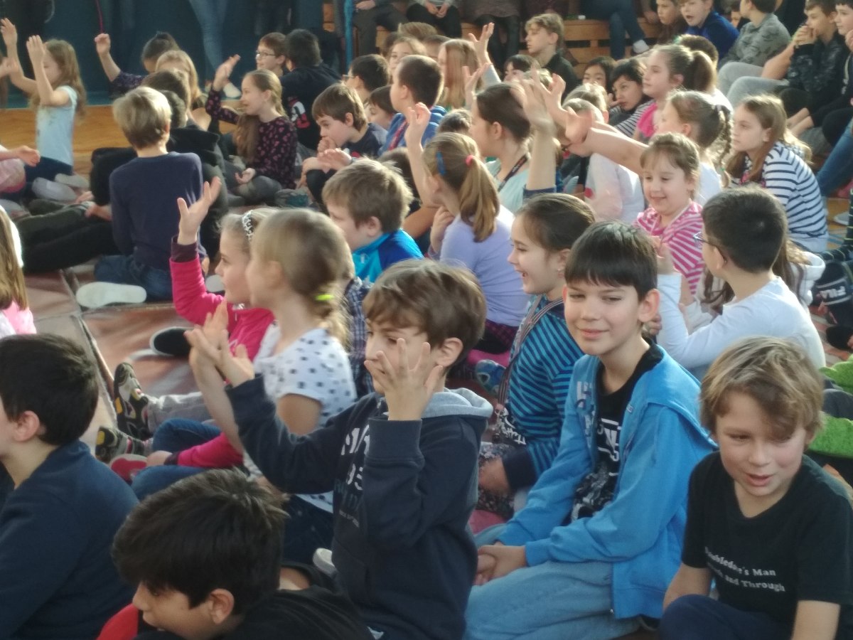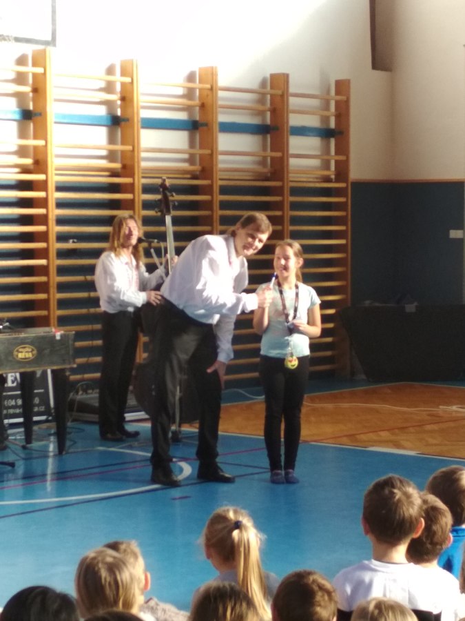 Také žáci III. B si v pátek 8. 2. užili představení hudebního seskupení Réva. Poslouchali, zpívali, tančili i odpovídali na soutěžní otázky. Zjistili, že na cimbál se zdaleka nehrají jen lidové písničky, ale také písničky pohádkové, rockové i jiné. Žákům se představení moc líbilo, akorát někteří po představení nemohli popadnout dech! ![]()