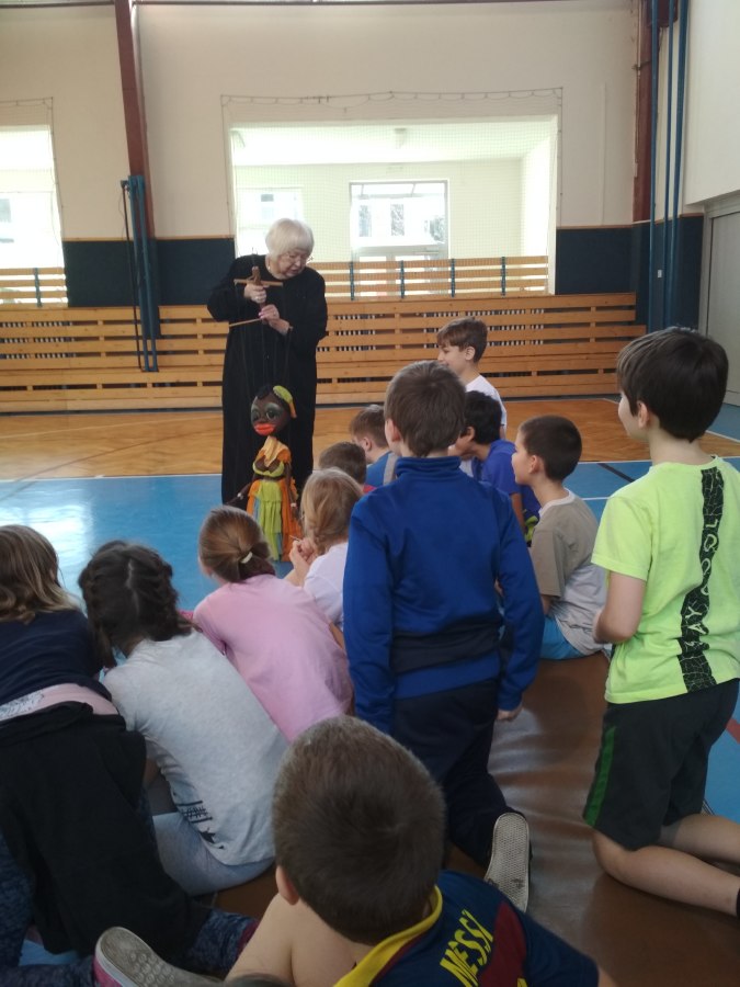 Hned po nácviku základů sebeobrany se žáci III. B přesunuli z malé tělocvičny do velké, kde se konalo loutkové divadlo.