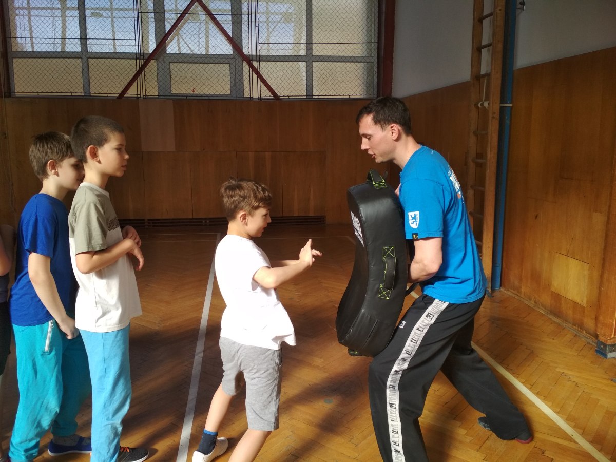 Nejvíce děti bavilo, když si mohly vyzkoušet, jak útočníka „odrovnat“.