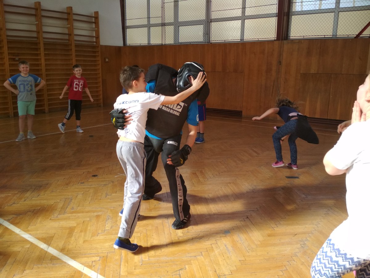 Dne 14. 3. se žáci III. B učili základům sebeobrany KRAV MAGA. Zjistili, jakým způsobem se bránit útočníkovi – kterým místem na dlani útočníka zasáhnout a hlavně kam, aby obrana byla účinná a útočníka překvapila.