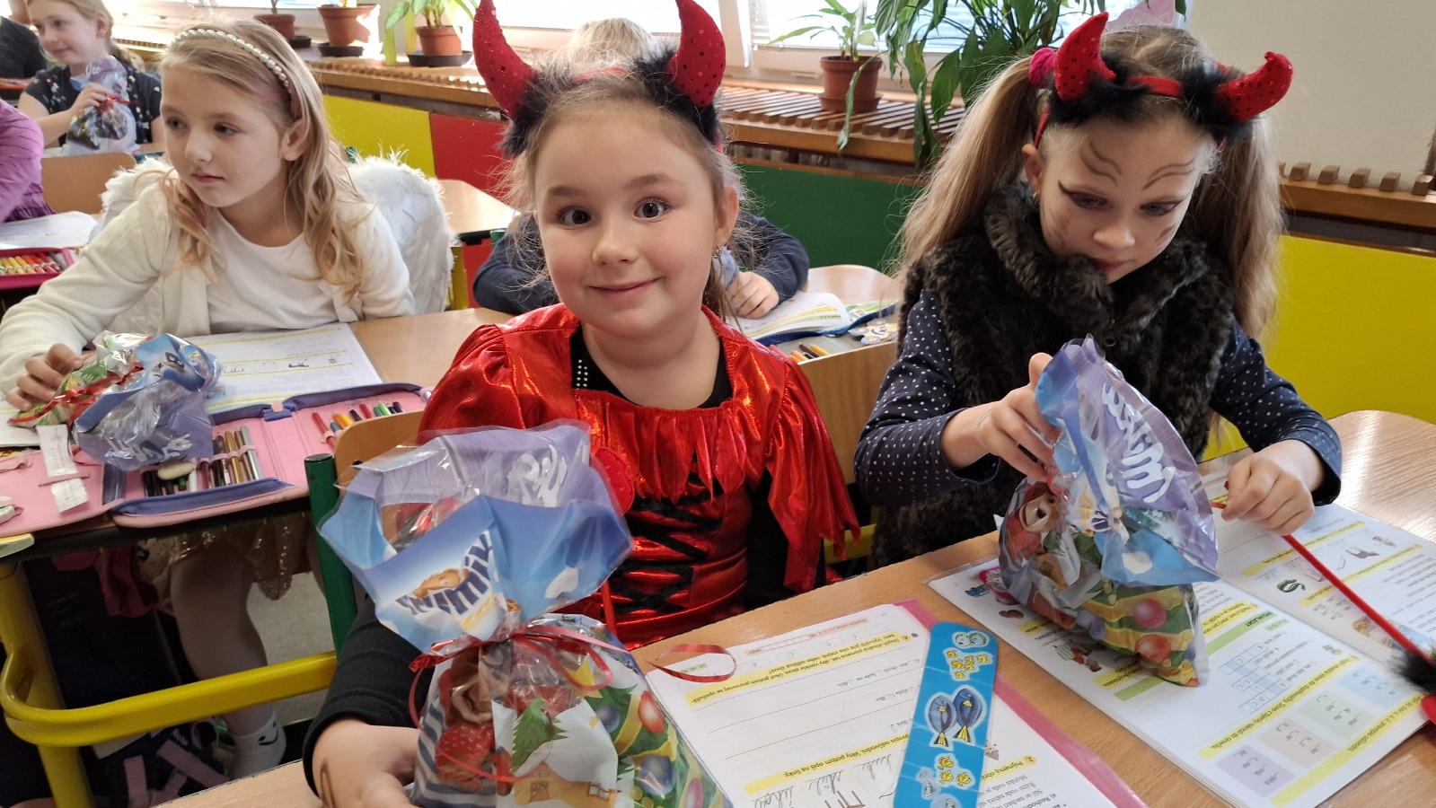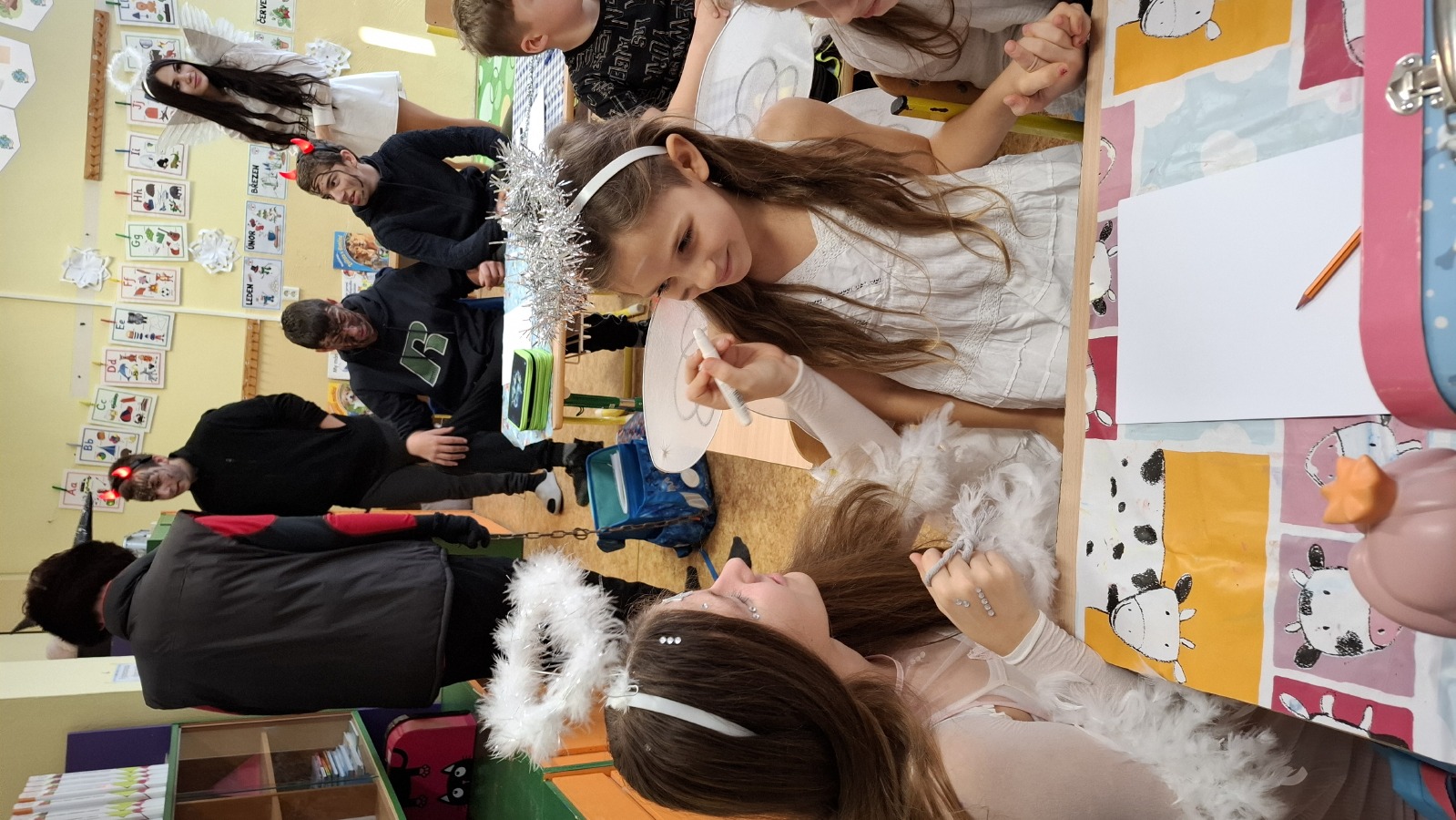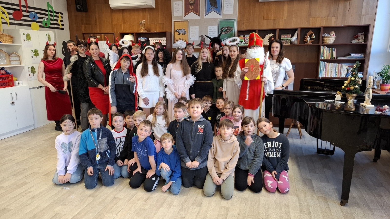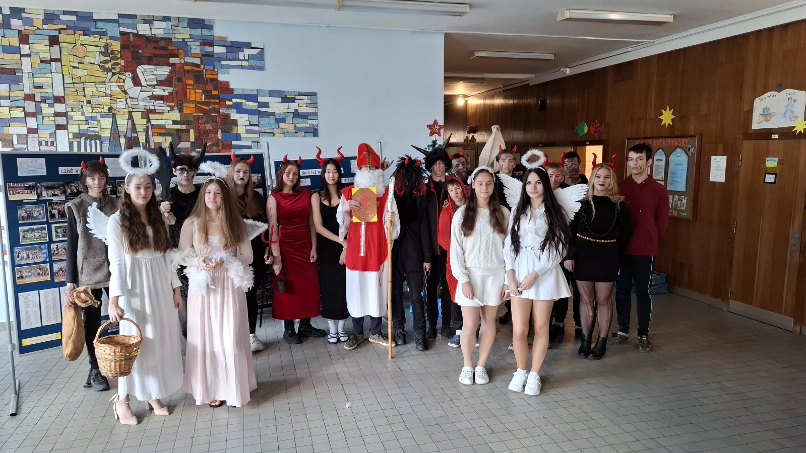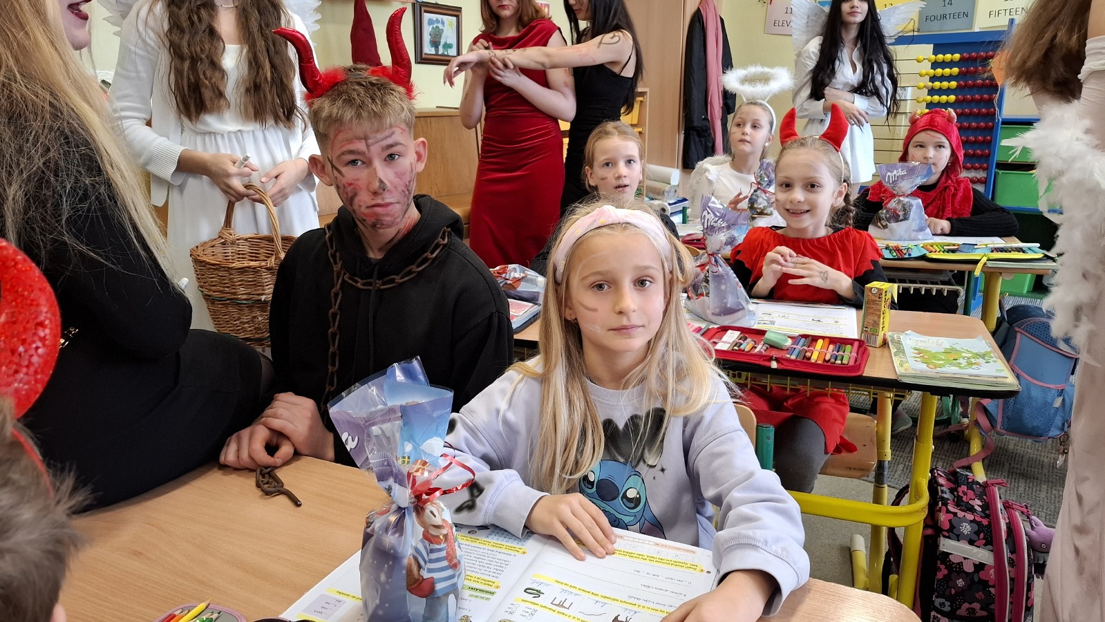 I v letošním roce se do každoročního mikulášského nadílení s nadšením pustili žáci 9. B. Mikuláš spolu s andělskou a pekelnickou družinou připravil pro děti z prvního stupně nezapomenutelný zážitek. Někteří malí „hříšníci“ sice nejprve uronili pár slziček, ale nakonec se vykoupili písničkou či básničkou a stejně jako ostatní si odnesli sladkou odměnu.
