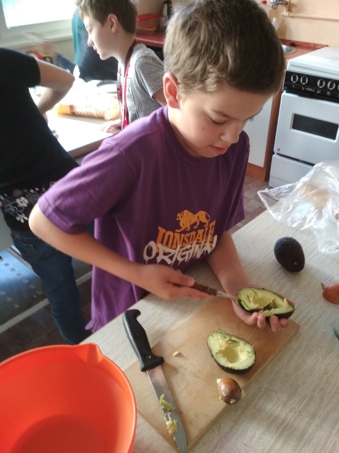 Připravili tradiční vajíčkovou pomazánku, mrkvovou pomazánku se sýrem, avokádovou pomazánku a pomazánku z červené řepy s ořechy. Práce šla dětem krásně od ruky a nakonec si na vlastnoručně připravených pomazánkách úžasně pochutnaly!