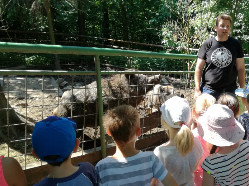 Prvňáčci také pozorovali nejen zvířátka, která bydlela přímo na statku, ale i zvířata cizokrajná a lesní. V nedaleké „Dědečkově obůrce“ byli k vidění koně a hříbátka, divočáci a jejich roztomilá selátka, pávi a pštros, který se jmenoval Nanůček.