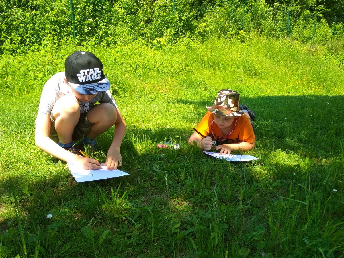 Úterní výtvarku si žáci III. B zpříjemnili pobytem venku na čerstvém vzduchu, kde kreslili okolí naší školy! ![]()